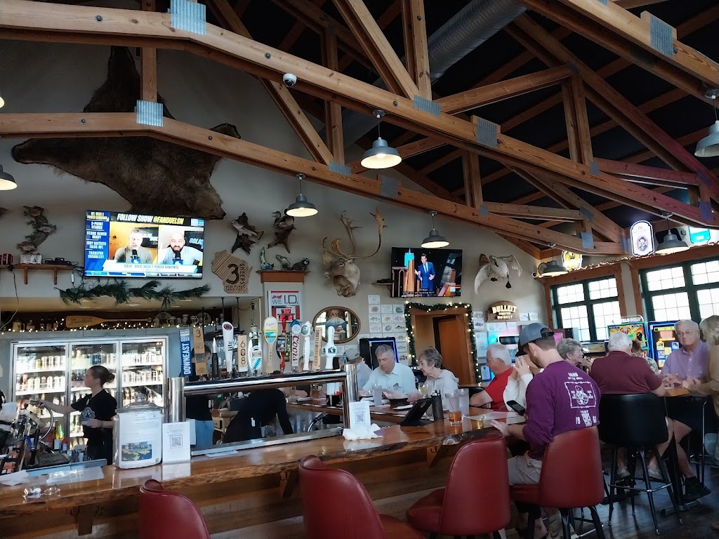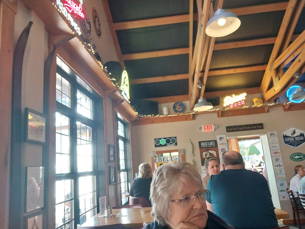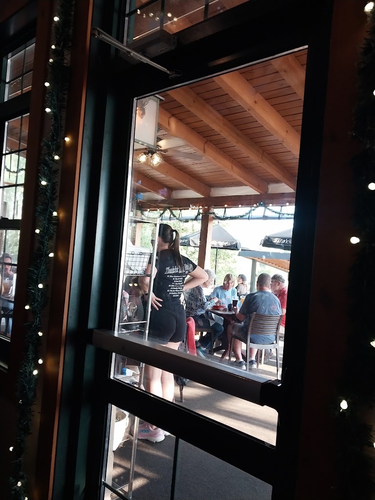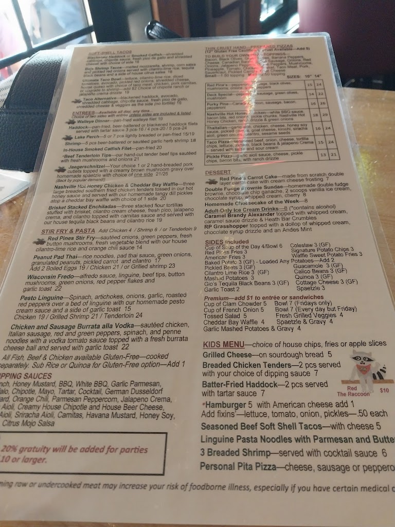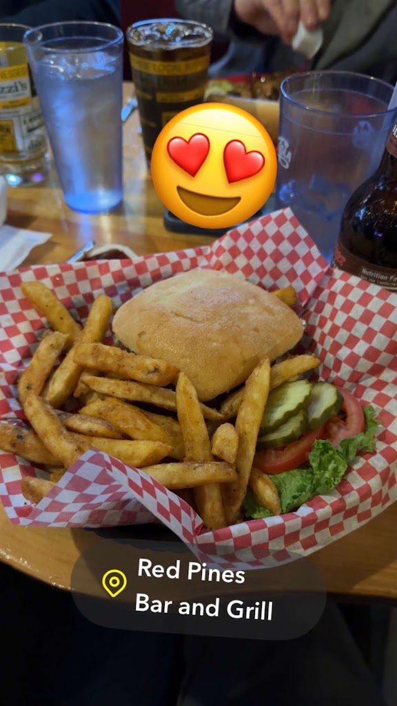 Took my mom out to dinner here last night, Wednesday. We arrived about 5:30....full parking lot as a lovely end of summer/start of fall evening, despite the near perfect weather, we didn't ask for deck seating. We had asked for a standard height table to which the hostess informed us that would be around a 20 minute wait. I reluctantly caved and said a high top table would be fine. To my delight the tables had comfortable and easier to hoist my shorter frame up on to, thanks Red Pines! The place was bustling but the volume wasn't irritatingly loud, again thanks Red Pines! Our table wasn't far from the bar and my mom commented "wow they have four bartenders!" So... if you're thinking of having a libation while you wait for your table, or just coming in for a drink? Fret not, you will be taken care of! In my photos you will notice a high top near the hostess stand, that too is a place waiting guests can have a seat while waiting for a table, as there's not benches or anything. Very courteous! If you look up and around... I rather enjoyed the north higher wall being decorated in taxidermy and he upper south wall? Beer signs; a good mix for a woodsy bar. Glancing around out at the patio, appreciative that they had a "curtain" to roll down for that Sun Sets in the West as to not blind any diners. I didn't venture past our table near the bar to see what the dining area was like at the westernmost portion of the bar where I could see standard height tables in..... Parking? We were lucky enough to find a spot right across from the door. They have a couple of lots, but spots may require a jaunt..... The food was good, my mom opted for a Red Pines pizza. I asked our server Rena if she'd order he Roll Tide wrap or a burger? She enthusiastically replied the Roll Tide. I opted for that sans the tomato. Side? Well..... pick a side...any side. Red pines has them...all! I opted for the sweet potato waffle fries. They were alright... some weren't done enough...maybe jumbled up in the fryer basket? Definitely not bad, I would definitely order them again. The Roll Tide was good... had a bit of heat on it, definitely not bad, just wasn't expecting it. Thanks Roll Tide for a good meal provided w good service. We will be back, cheers!
