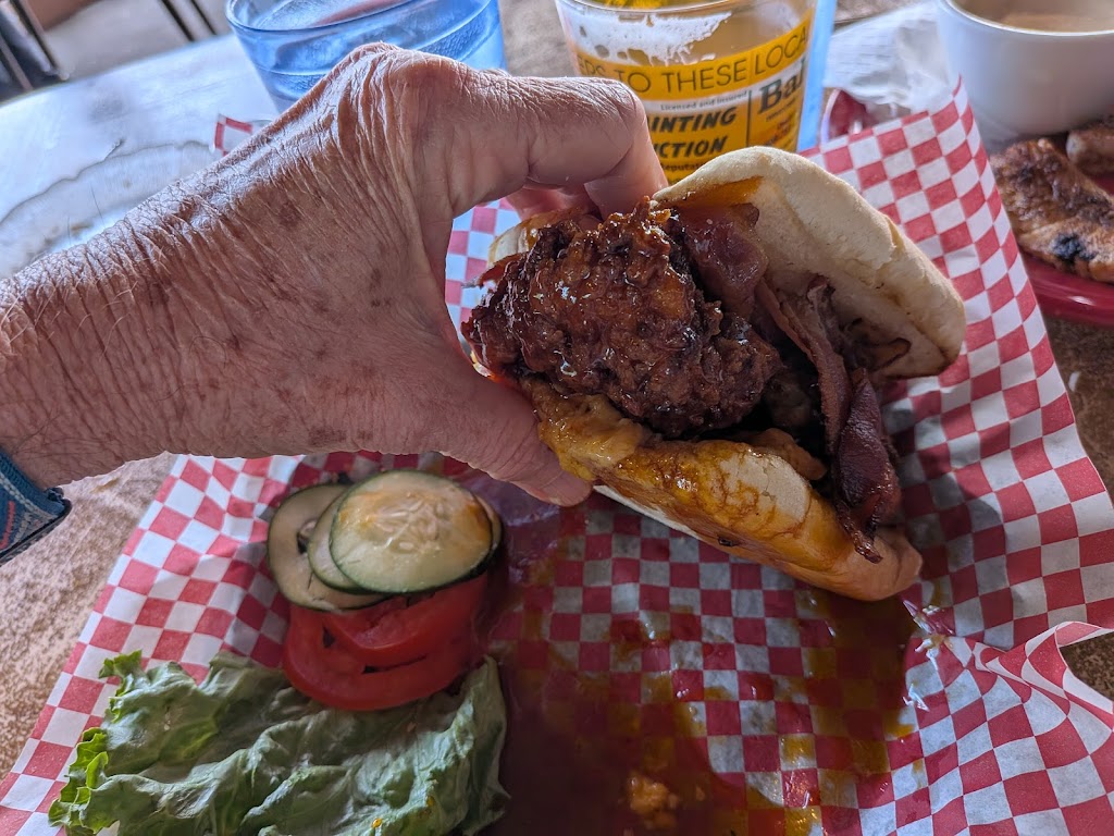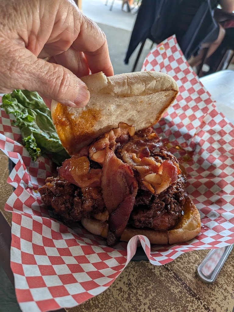 We each had the Nashville Hot Chicken dinner. OUTSTANDING! The heat isn’t too hot, just a little nip of spice on the back of the tongue. This place is one of the best in the area.
