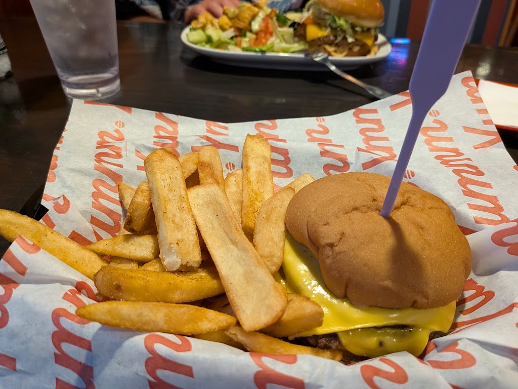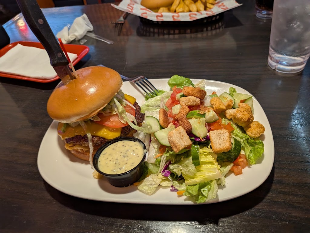 We went on a Friday evening and got seated right away. The waiter was very attentive and kind. We had the avo-Cobb grilled chicken salad and the whiskey BBQ burger. To me - this restaurant has some of the best bottomless steak fries. We also ordered the mini donuts. Everything was soooo good! If you love a lot of hot fries, this is the place to be.