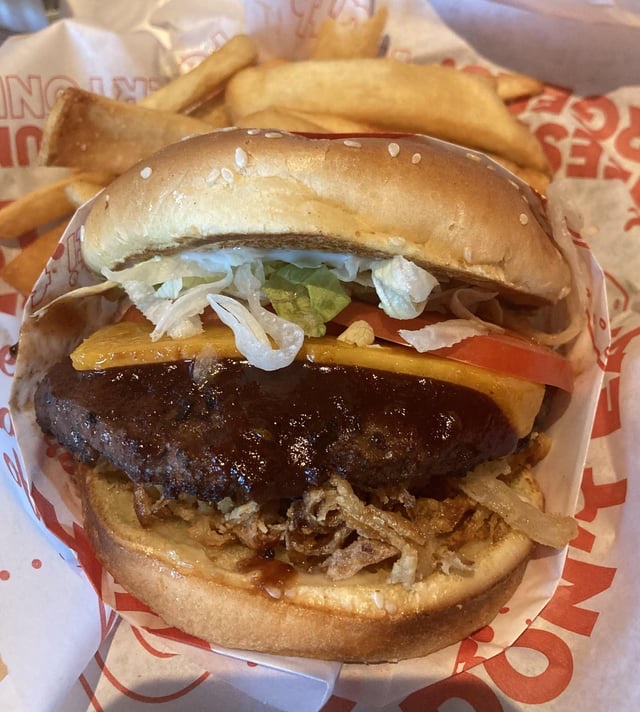 The fries were also overcooked! Extremely dry. And upon reheating them at the house, they turned rock hard! Had to throw away all the fries because they were inedible. Lastly, the burgers cost me $20 each thru the Uber Eats app! And let me tell you they were edible, but they were no bigger than a burger from McDonald's. For $20 I expect the patty and bun to be 2-3 times wider in size! What a rip-off!! We won't be ordering from this restaurant again! For $50 I could have fed my whole family steak dinners at Texas Roadhouse!