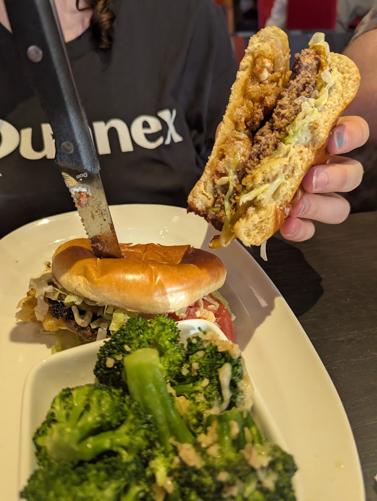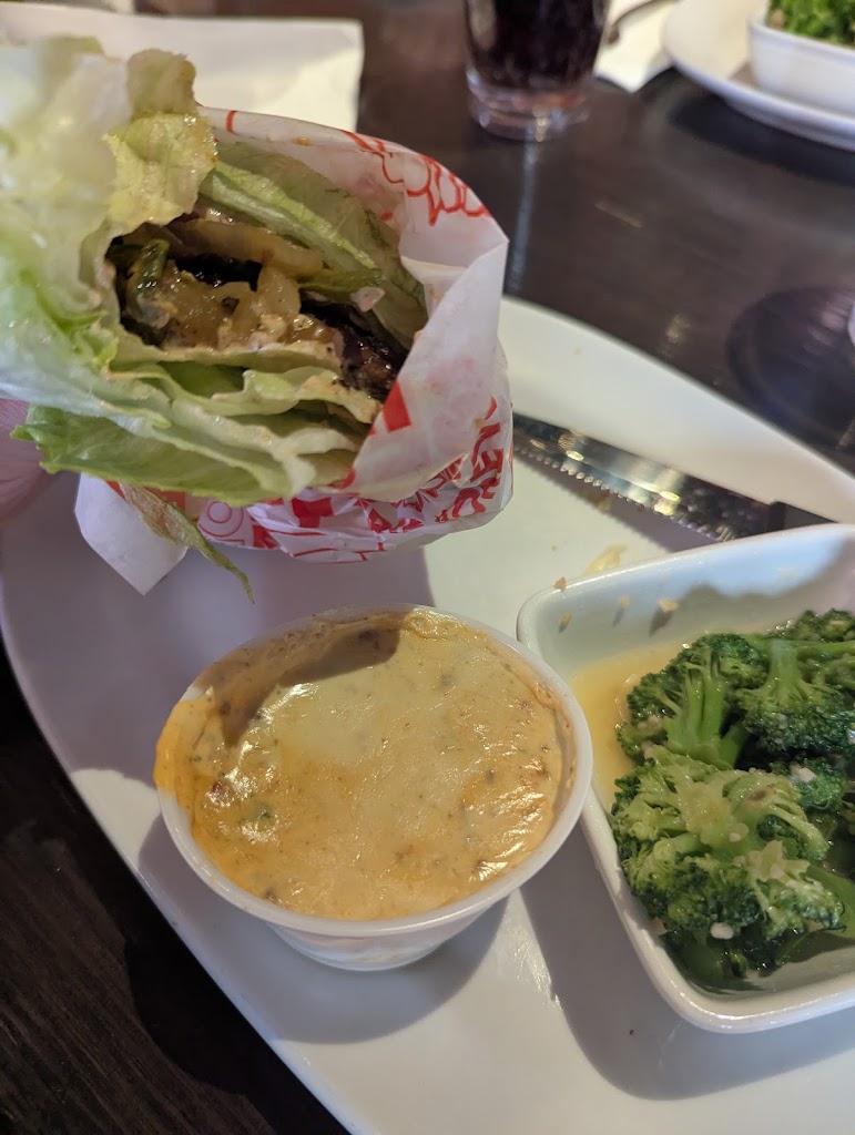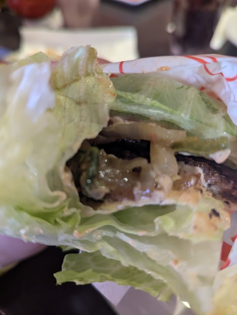 The food was good even has vegan burgers, however. When making your order specify no sauce, they put some mayonnaise thousand island type dressing on my vegan burger. And when you order drinks major sure you have the same server for that refill, otherwise you might get alcohol in your next drink even after telling the next server what your drink is. Then it's all about the gossip and laughter over her error with her Co worker. Other then that. Did was great original server was great. I took off 2 starts for the sauce error and there bad refill drink server. Not to mention the to go box.