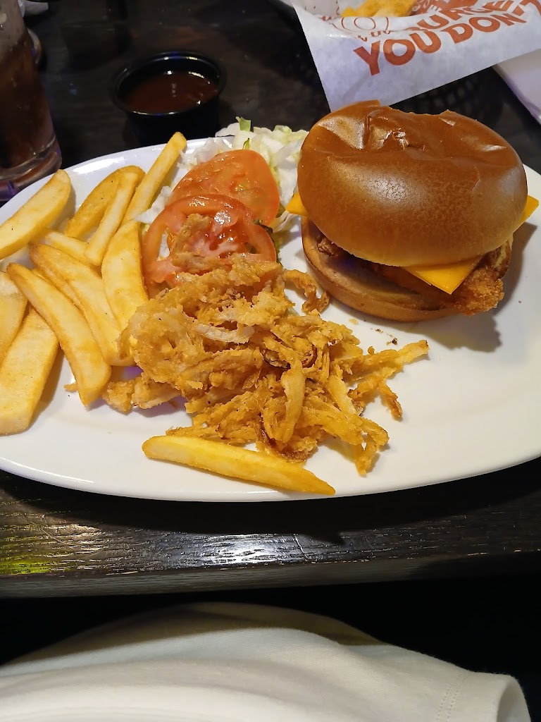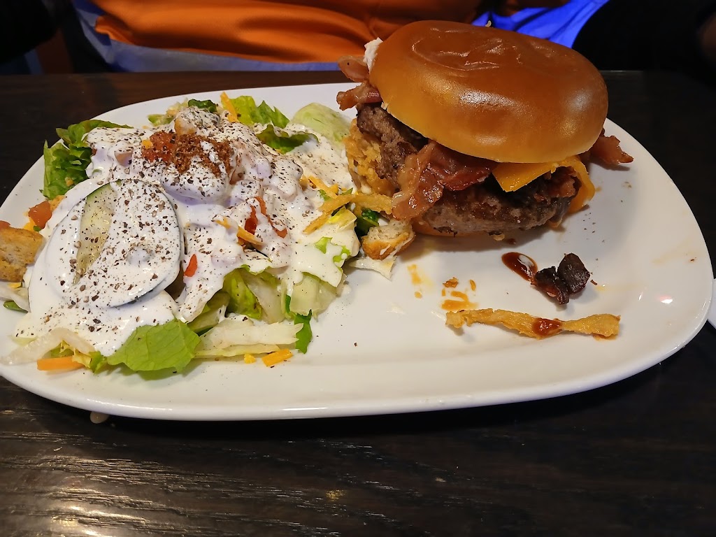 Either my bbq burger was poorly made or there suppose to be skimpy, very little onion straws and bbq sauce, the patty is not very big for what you pay for, they only drop a few fries on the plate because there endless but my re-order took so long that I no longer wanted them, I had eaten my burger and beer and was ready to leave, there's many other options to spend 40 bucks on a burger and 2 tap pints of domestic beer, 90% of the draft beer wasn't available because of a Co2 problem I was told and come to think of it my bill should have been closer to 30 dollars, on a side note the portion of the handicap bathroom was unusable. I wanted to like it here, the atmosphere and workers were very freindly.