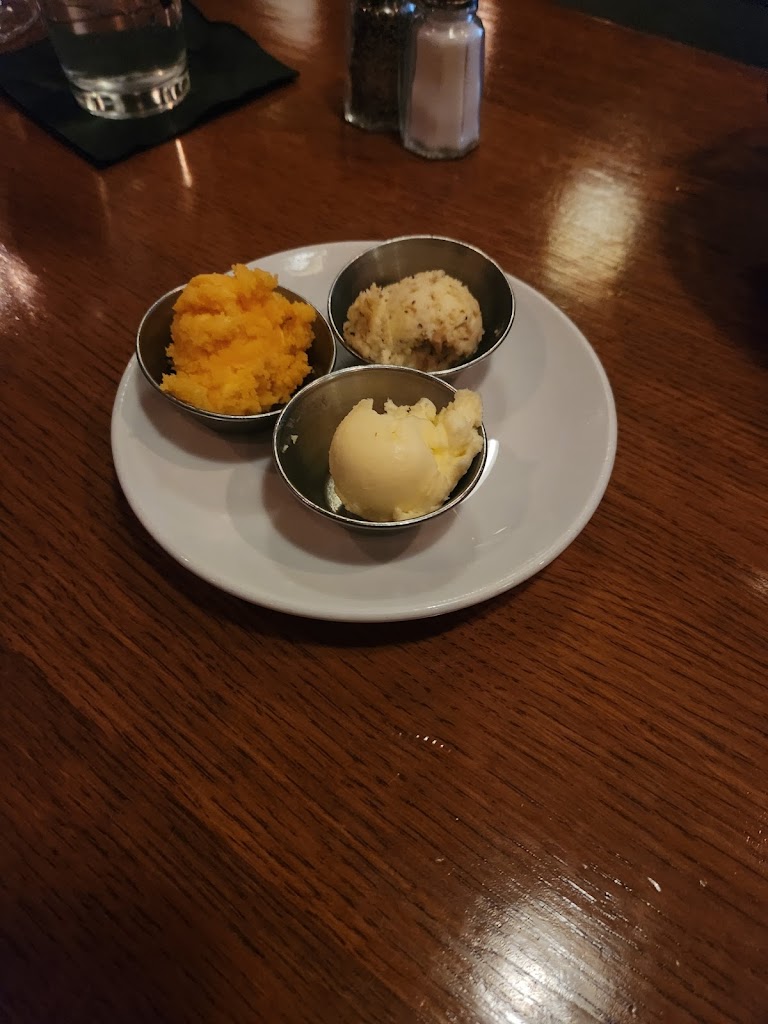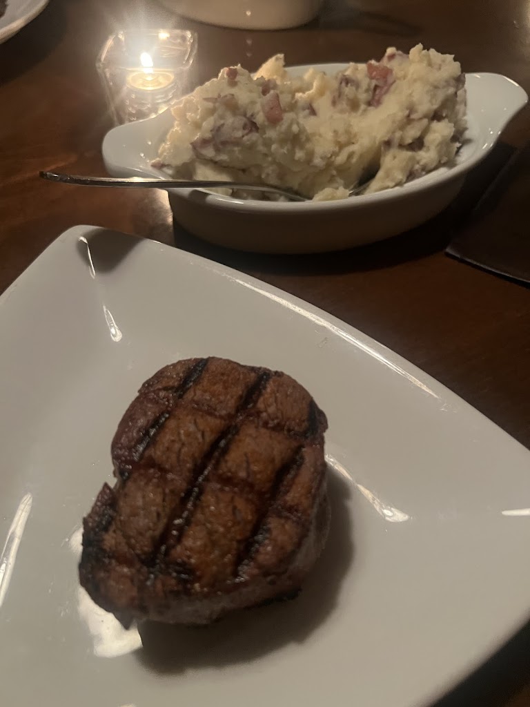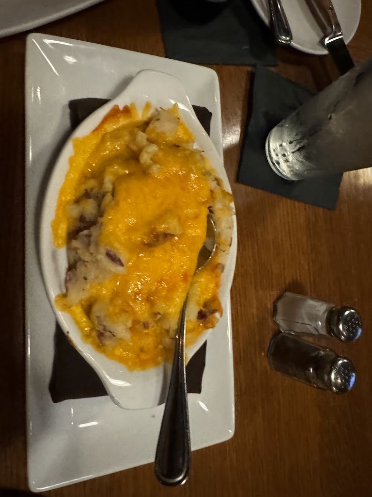 We went back again for my birthday and were disappointed. The garlic mashed potatoes were lukewarm and very dry. I got a peppercorn crusted steak, which was dry and kind of tough. The other 2 steaks at the table were much better than mine so maybe it was the peppercorn that did it.