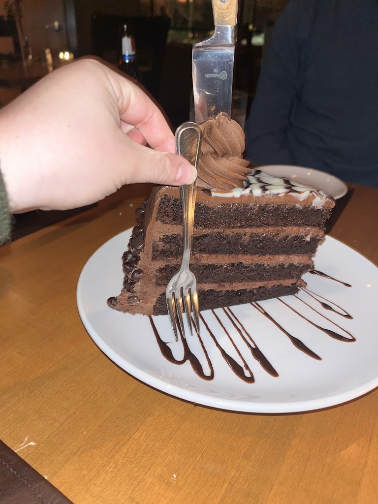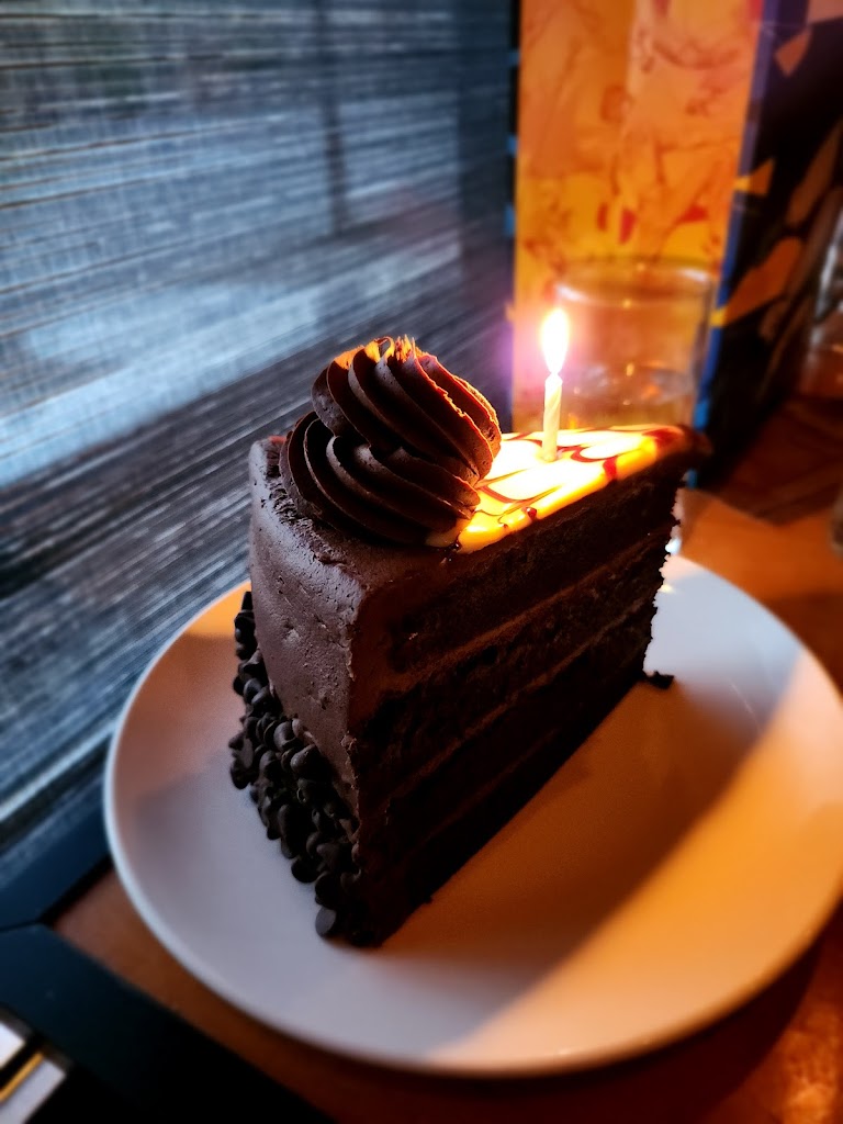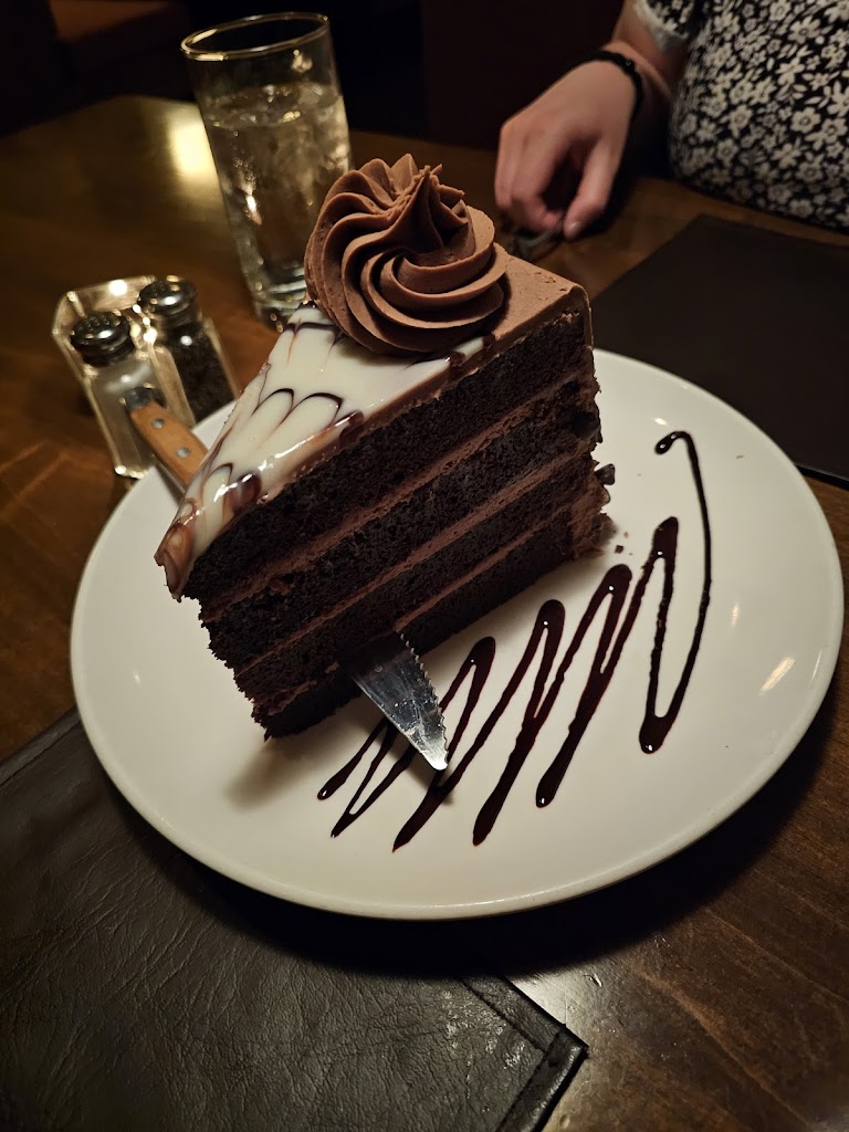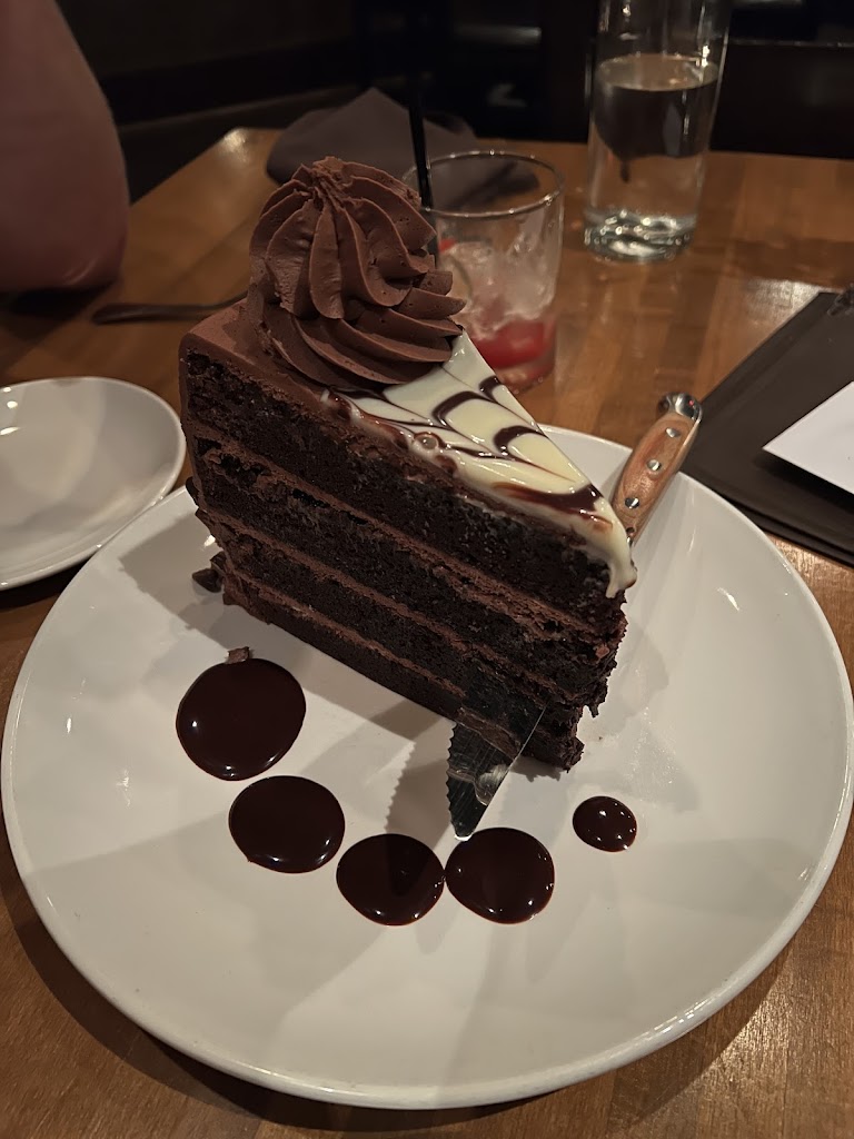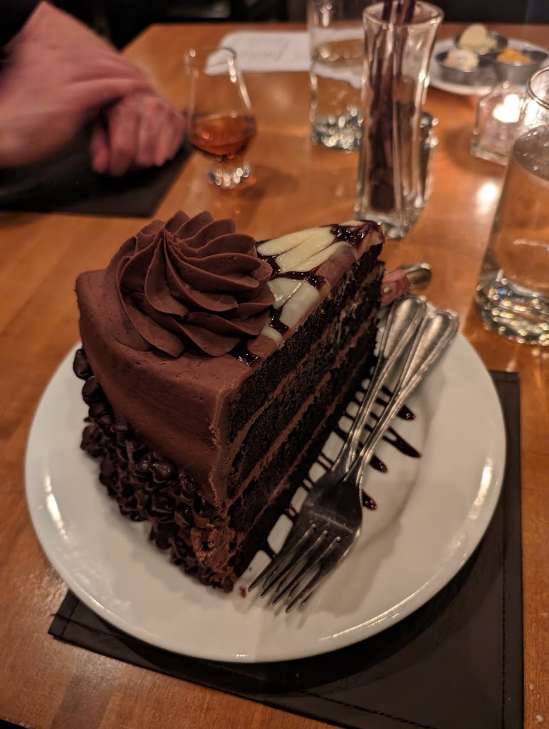 We ordered dessert, and I chose their chocolate cake. This cake is an absolute unit. Could easily serve 4 people. It's sooooo big, but it's an excellent cake. Very rich and chocolatey with a good balance of rich and sweet.