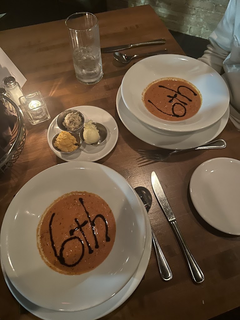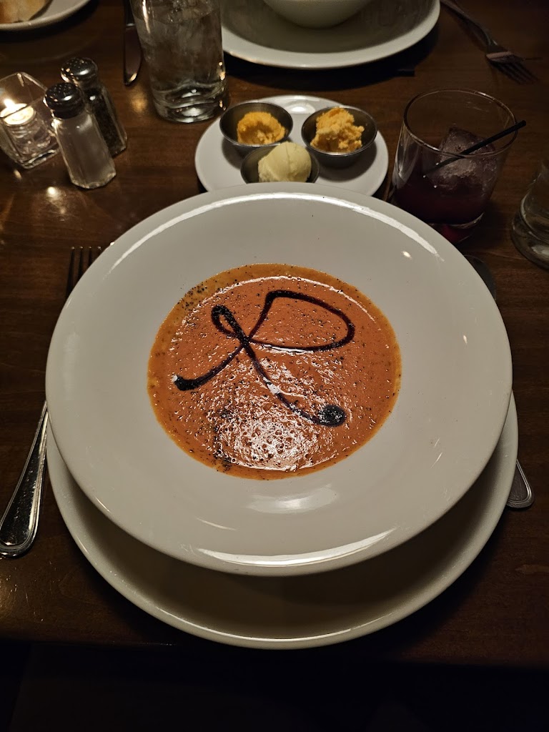 Amazing staff from the moment we stepped in the door to the moment we left. We were greeted by the hostess who wished us a Happy Anniversary and seated us. At the table was a Happy Anniversary card from the restaurant. Thomas T was our server and was absolutely delightful. Food was incredible from the appearance to the taste. My husband and I don’t typically like French onion soup, Thomas suggested we should really give it a try, which we did. it was absolutely delicious. Never in my life have I had French onion soup like that. The tenderloins were very good as was the butter assortment for the bread they bring to your table. we tried the Sriracha honey butter, which had a perfect blend of spice and sweet. So many wines to choose from, and dessert was phenomenal! They brought us the chocolate cake, which was four layers- absolutely huge. It is a high end restaurant but worth the money spent. The ambience is so nice. I would definitely recommend this restaurant.