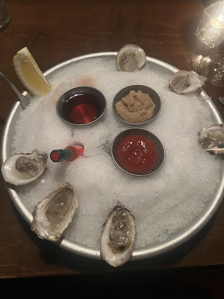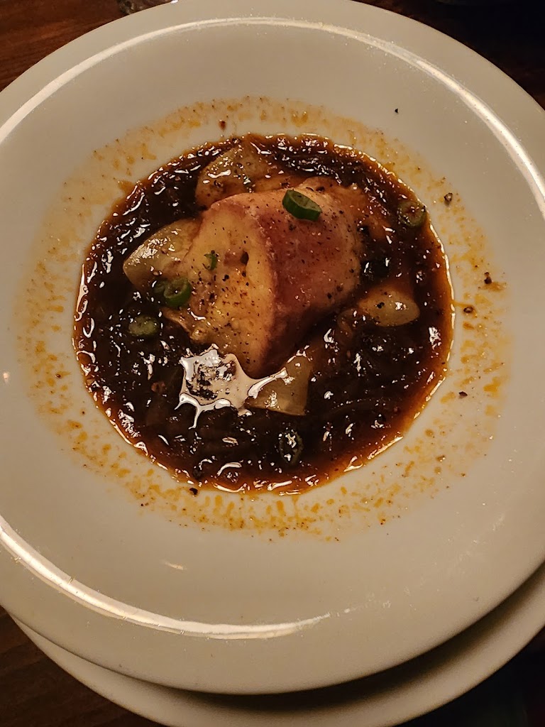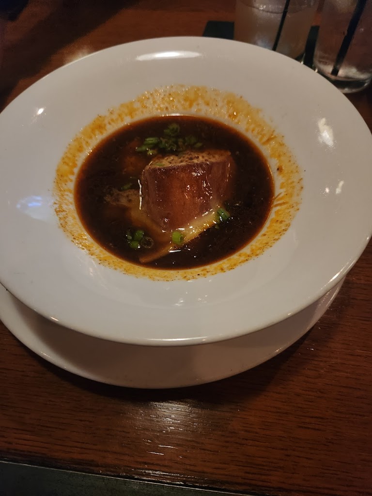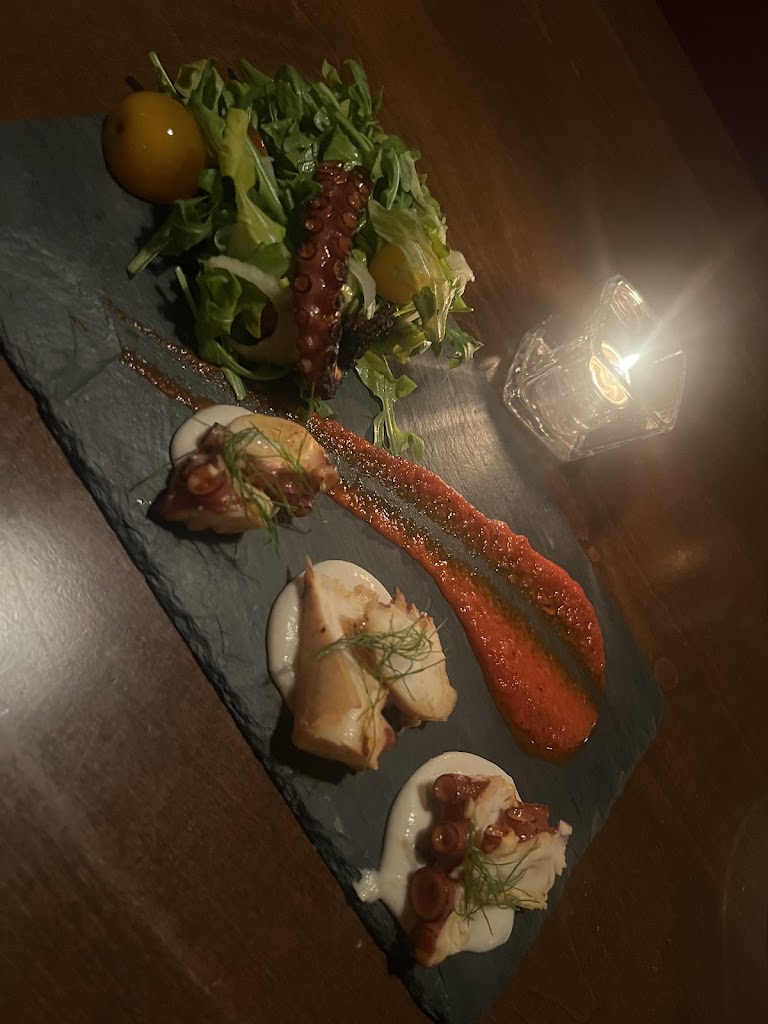 Been meaning to try this place for forever and boy, we didn’t realize what we were missing out on until we finished our food. When you first walk in, the ambiance is so calm and inviting but also a romantic atmosphere. We got seated in a nice quiet booth. Our waitress came over, Sarah R, and she was fabulous throughout the entire meal. Although our bill for 2 people was well over $200, it was the best tasting food we’ve had from start to finish. We started with the octopus as well as the half shucked oysters. The French onion soup was probably the best French onion I’ve had in the state. The bread came out warm and had three different choices for spreads on it. My steak came out to perfection. The garlic mashed were delicious but had no room whatsoever for them after having all those other things. For dessert we ordered the cheesecake as well as the red velvet cake. You could have fed an entire army for the size of cake that came out.