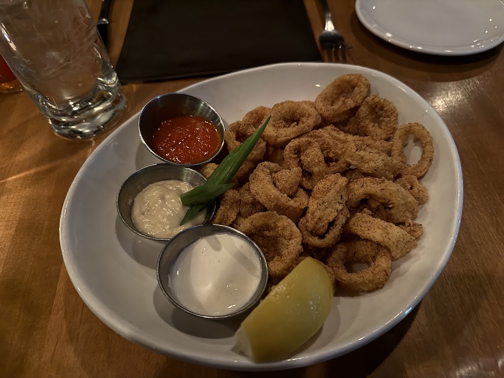 Now for the food. The calamari and spicy shrimp were both super flavorful. The bread and butter assortment was delightful. The mushrooms and asparagus were bursting with flavor. Our steaks were cooked perfectly, and the taste was immaculate. Our desserts were giantic! My birthday cake was perfectly moist and delicious.