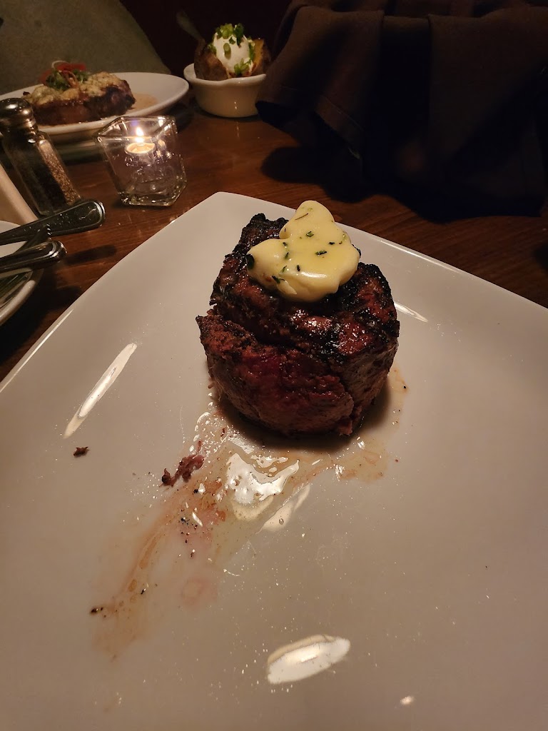 So we come here every year for our anniversary. Generally we have 'our booth' which isnt like a huge deal, I'm not that conceited lol. I also have hearing loss and severe cptsd so I cant sit in the center of busy restaurants where people are intoxicated and loud anymore, hence the booth we usually sit at. Got there for my reservation they tell me they got us a table in the center of their other room, which is always a fun. We sat down and proceeded to watch our waiter be super personable with everyone around us, but us. Even at one point bringing us someone else's food with happy birthday written on it (theyd shown up like 15 minutes after us and we still hadn't gotten our food when they were trying to bring theirs out.) He made comments about me wearing a hat so im sure he just thought I was too low class for the establishment and didnt think I was worth the attention. My steak was half well done and and half medium (ordered medium rare). Mushrooms were gritty, as were the scallops. Honestly we talked and decided it was a bad enough trip that it won't be our tradition anymore, and that's the most unfortunate part.
