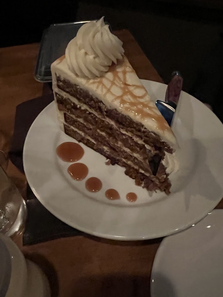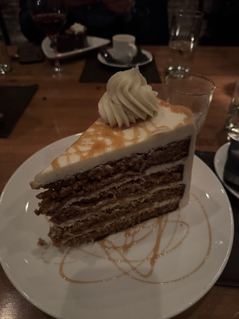 All of the food was beyond words delicious. Our server, Jacob B. was fantastic. He was always there right when needed but never lingered, super friendly and he recommended the Carrot cake for dessert to go which was as big as my head and so tasty!