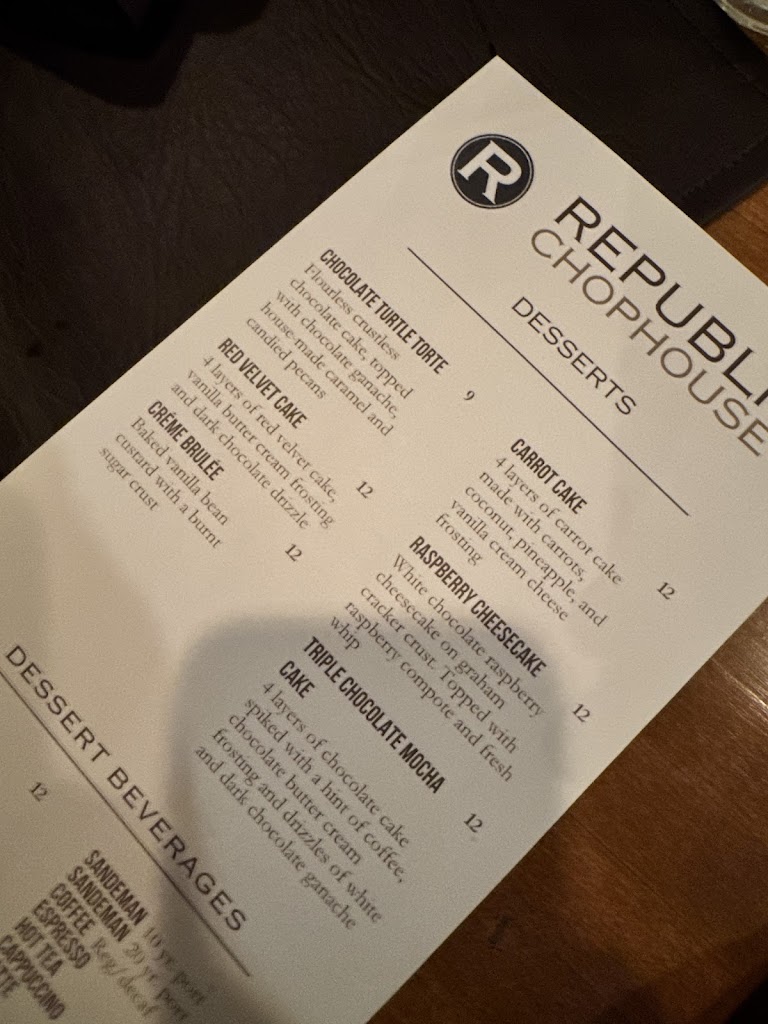 Enjoyed a great dinner, drinks, and dessert, celebrating our 32nd wedding anniversary.