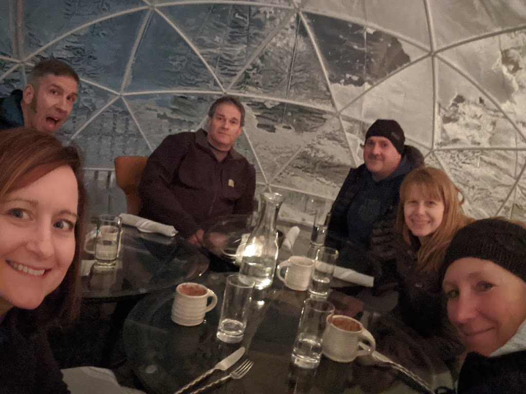 A group of us had a blast in the outdoor "igloos." What a fun experience. The staff was so friendly, the food was amazing, and the atmosphere was perfect. It was close to zero degrees outside and we were moderately warm with the indoor heating unit and comfy wool blankets. We definitely dressed for the weather, but can imagine it would be nice and toasty if the outside temp was 20s or higher. I highly recommend for fun night out!