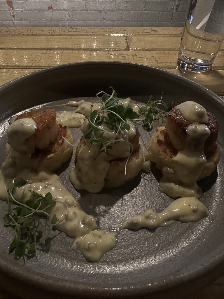 I took a star off because I do think there is not much value for the price. I had scallops, I think there were only three scallops. This is what the menu said 'Root Vegetable Potato Cakes, Bacon Bearnaise, Micro Radish'. It was very good, but for approx $30, there should at least be some kind of bread to accompany it. Every one else at my table got way more food. I left hungry. Like my husband said, there food was maybe ten dollars more. If I go back, I’ll just get the burger, hubby said it’s great and not as pricey.