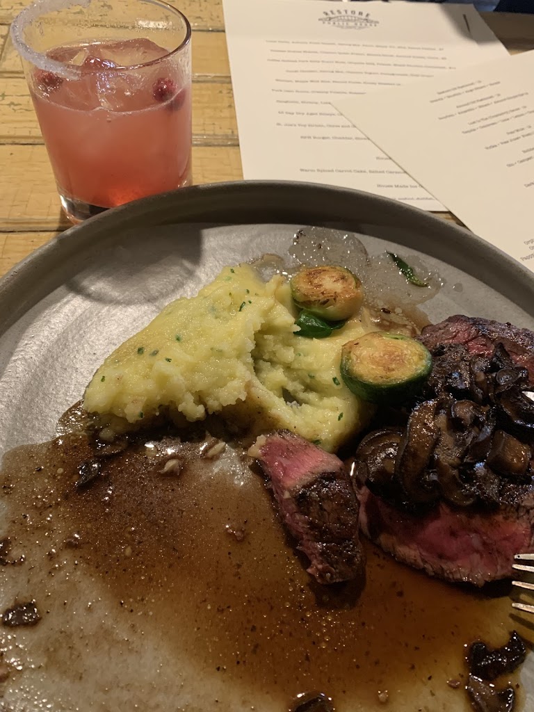 That said, I felt the food and service could use a little refinement. We ordered the sirloin and the New York strip, while ordering the server asked “is medium rare okay for those” it made me feel pressured, I’ve never had a server ask about steak temperature that way so it threw me off, however I let her know I would like mine medium and my partner confirmed medium rare for his. When they arrived they were both pretty overcooked, especially the sirloin being cooked medium well-well (little to no pink). The flavors were there, but proper execution on the steaks would have made a big difference.