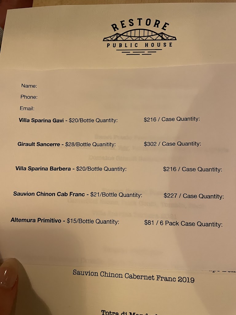 We always have a wonderful experience at Restore Public House. It’s our go-to night out! We always have great service with a fresh menu. The food is always fabulous. It will not disappoint!!!