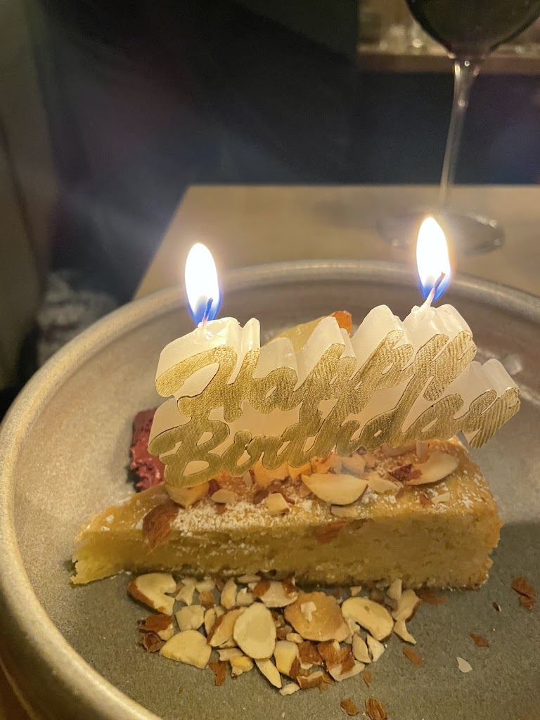For dessert, we indulged in the flourless chocolate cake and the mille-feuille. The mille-feuille was outstanding—I especially enjoyed the almond pastry cream. The flourless chocolate cake, though tasty, wasn't quite what we're used to. We often make it at home for special occasions, and this version leaned more towards cakey than fudgy, almost like a gluten-free take on a standard chocolate cake than your typical flour less chocolate cake which is a thing of its own. Still, we enjoyed it and finished it off.