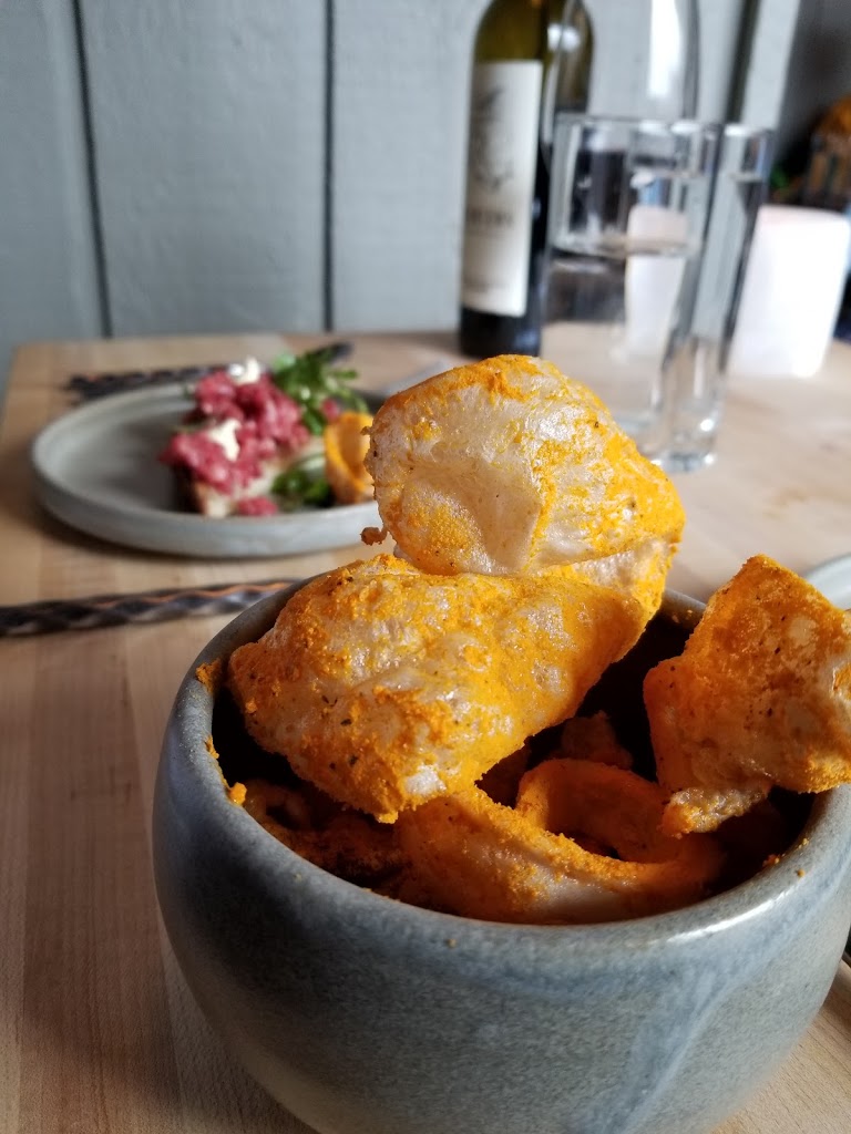 Enjoyed the food. Not a large menu, but delicious. We had pork rinds, wings, octopus, the burger, and the ice cream sandwich! All delicious. The drinks are limited but I am sure that will grow!