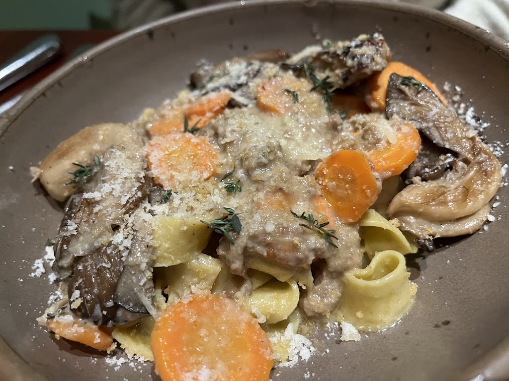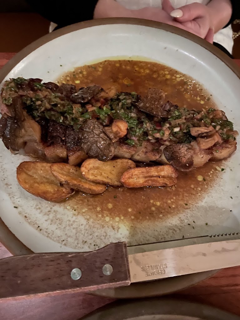 The poor cut beef was stringy, super fatty, and not well rendered, so it was a tough and rubbery piece of meat. Also the beef dish wasn’t rested so it was a soupy mess on top of potatoes. I left the beef because it was inedible. The steak knife which was dull could barely slice through it. The beef I got did not match the pictures of other diners. Honestly, I should have taken a picture of the unfortunate dish, but I was hungry and from out of town and wanted to leave.