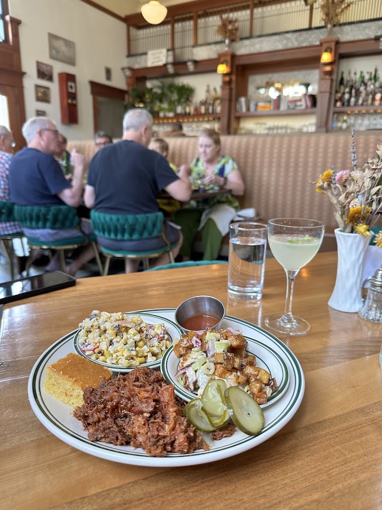 Crisp cocktails, great service, and excellent food. The restaurant is converted from an old bank and we loved the quaint details of the space. Staff were attentive, friendly and informative. Vegetarians and meat-eaters alike will find a variety of options and leave satisfied. Please try the lima beans, even if you think you don’t like lima beans! Some other table favorites were the fried potato salad, the white bbq sauce (put it on literally anything), and the collard/pimiento cheese melt.