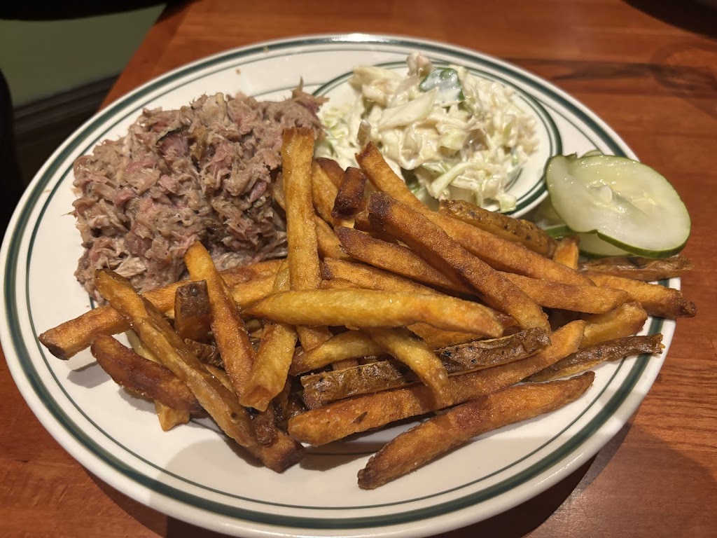 My pulled pork sandwich and side of potatoes or so salty I could barely choke them down, but had to because we were On a tight timeline and I couldn’t ask for the food to be redone