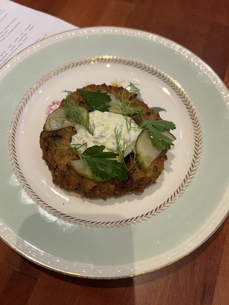 Three of us shared the cucumber salad, heirloom tomato salad, pasta, schnitzel and a crème brûlée-all excellent!