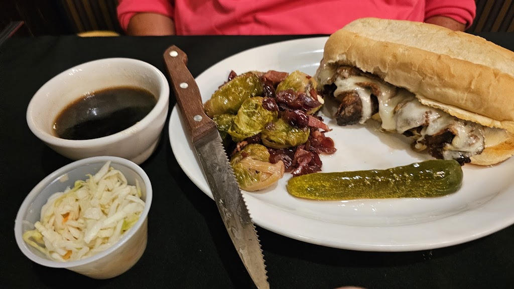 Christi ordered the side of brussel sprouts. They came out very cold, as if they were in the refrigerator. We are not sure if that was how they were to be presented, but cold whole brussel sprouts are not pleasant to eat. We suspect they forgot to heat them up before serving. Her French dip (it goes by another name) was very good. The server did substitute the brussel sprouts for a very good side of risotto.
