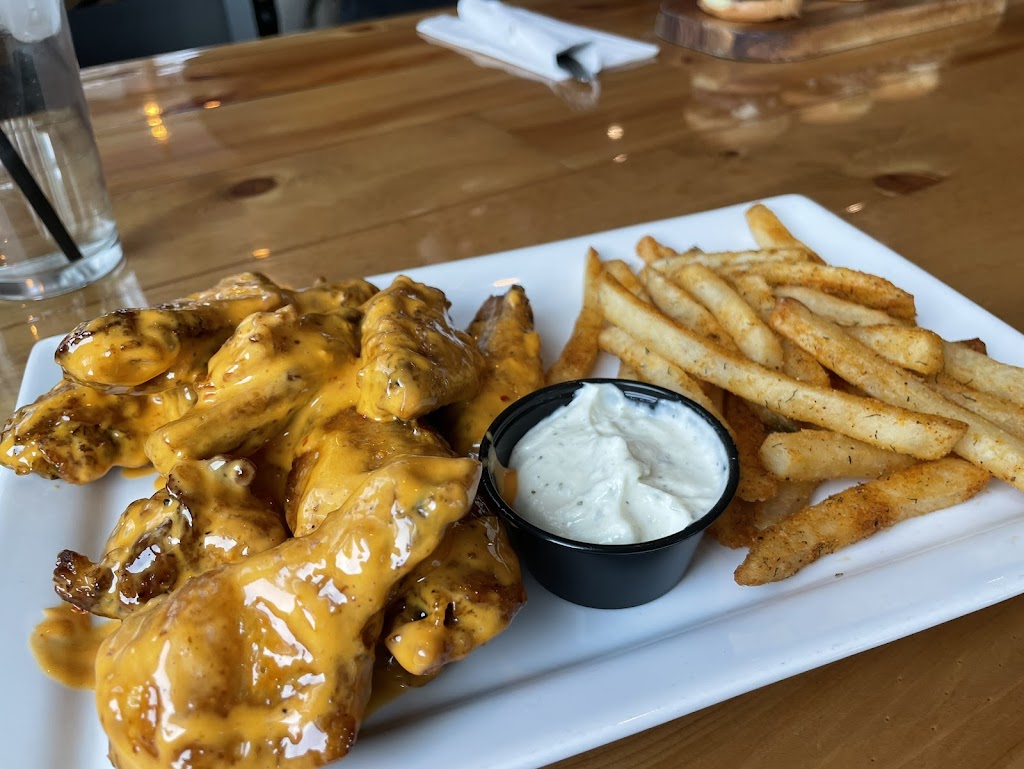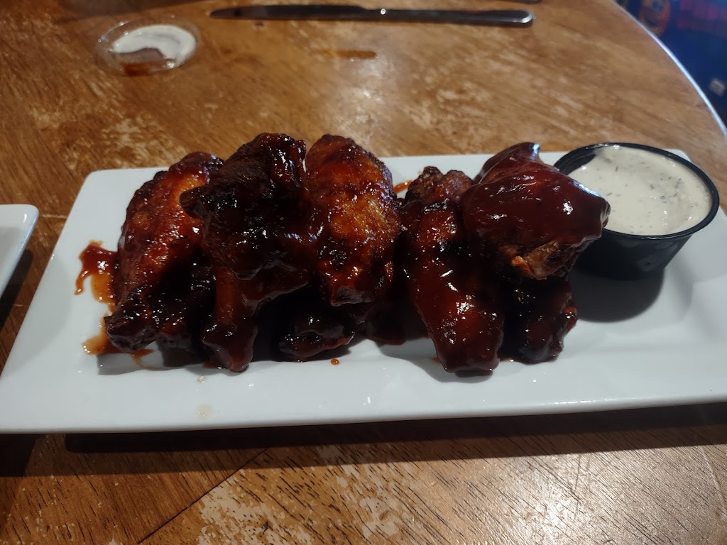 We got a to go order because I had my dog. The only thing bad about it was we didn't get silverware or napkins. Otherwise, the chicken wings were Devine, but the boneless wings were a little bit too well cooked. But it's still very delicious! It's expensive but worth it!
