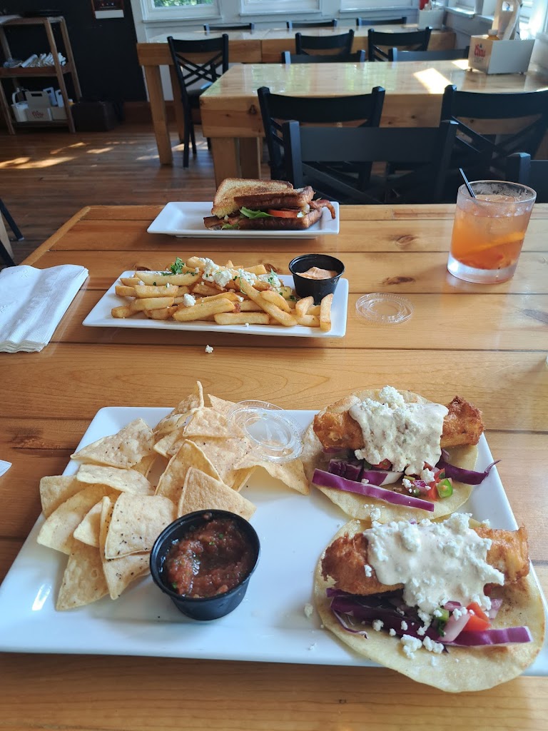 Birthday lunch, had the fish tacos on the deck. So peaceful back there. Our waitress was great! Tacos are very well put together, great flavors! Homemade tortilla chips are awesome!!
