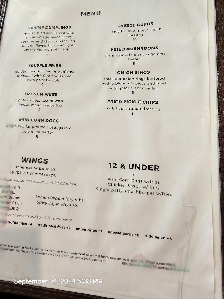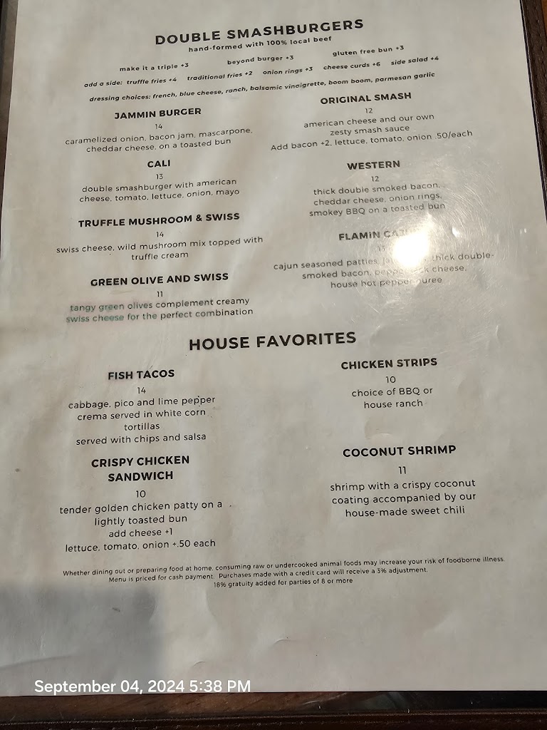 Food. I got the western smash burger and if this is considered a good burger in Wisconsin I am truly sorry for y’all. Most bland frozen pre partied burger I have ever had!!!! Seriously McDonalds burgers have more flavor than this thing did!!
