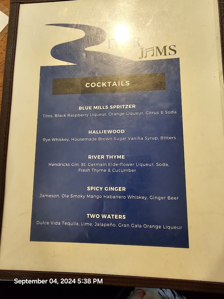 First time at River Jams went on a Friday night. They only serve their fish fry on Fridays. Not all of us wanted fish. We would have liked to have even appetizers.