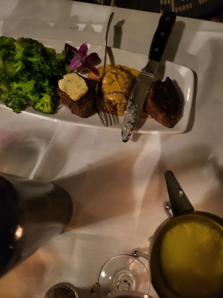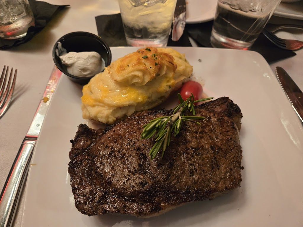 Fillet was excellent( bro in law had that) prime rib was acceptable (wife’s meal); ribeye was the worst I’ve ever had: pretty sure it was a New York strip, chewy, no fat, and 52 dollars, which I don’t mind paying if it is good.