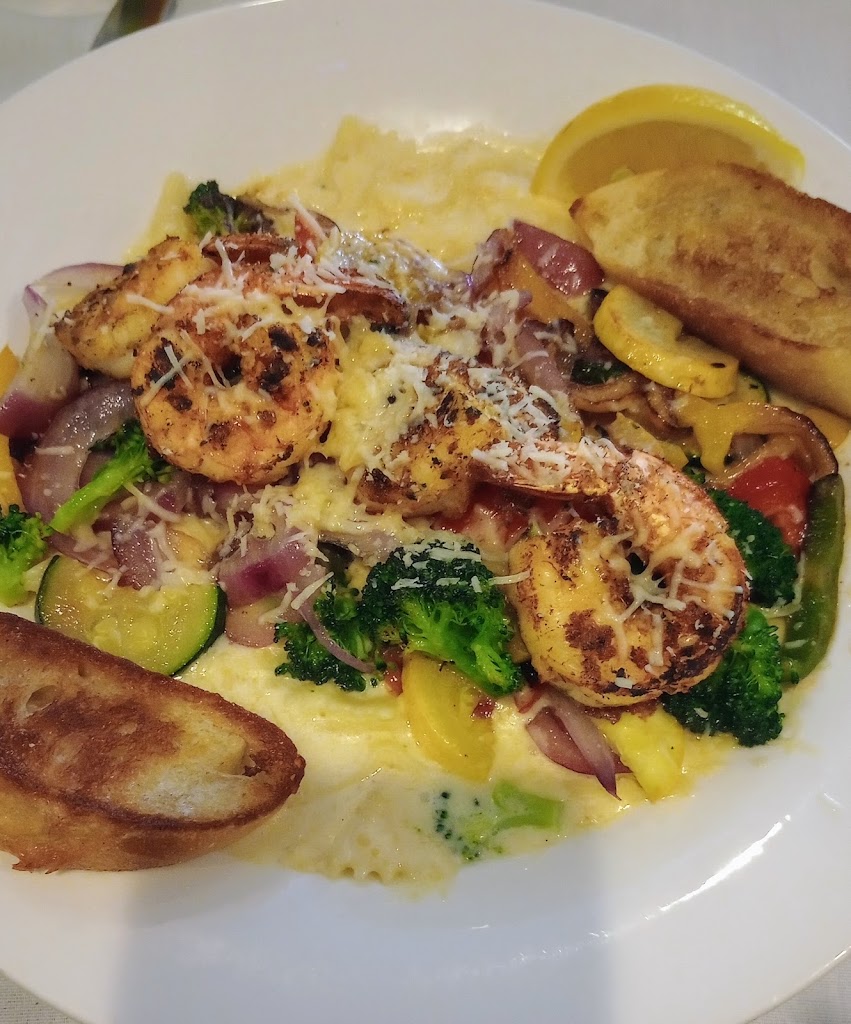 Party of five all first-timers. Three of us ordered the prime rib dinner, one had salmon and one had shrimp alfredo. We started in the bar and then were taken to a table. The appetizer came out with our meal right behind it which was disappointing, our service once we were at a table was a bit less consistent and we had to actually find our waitress on a couple of occasions. The food was very good, a little more high-priced than we expected. We would definitely go back though.