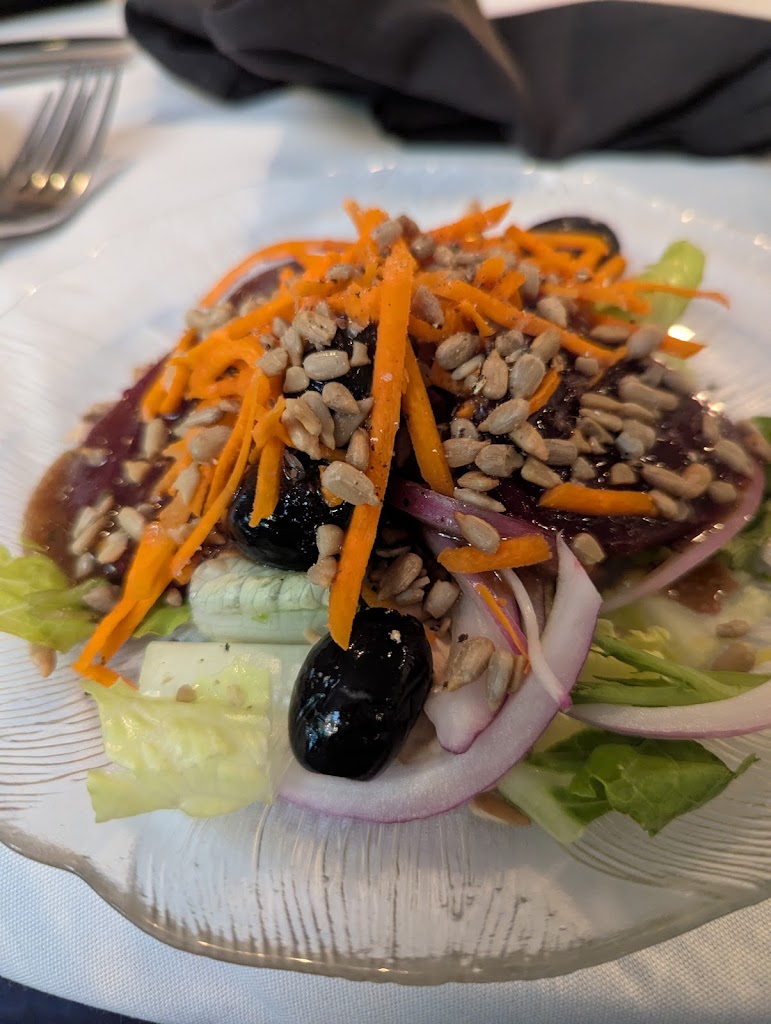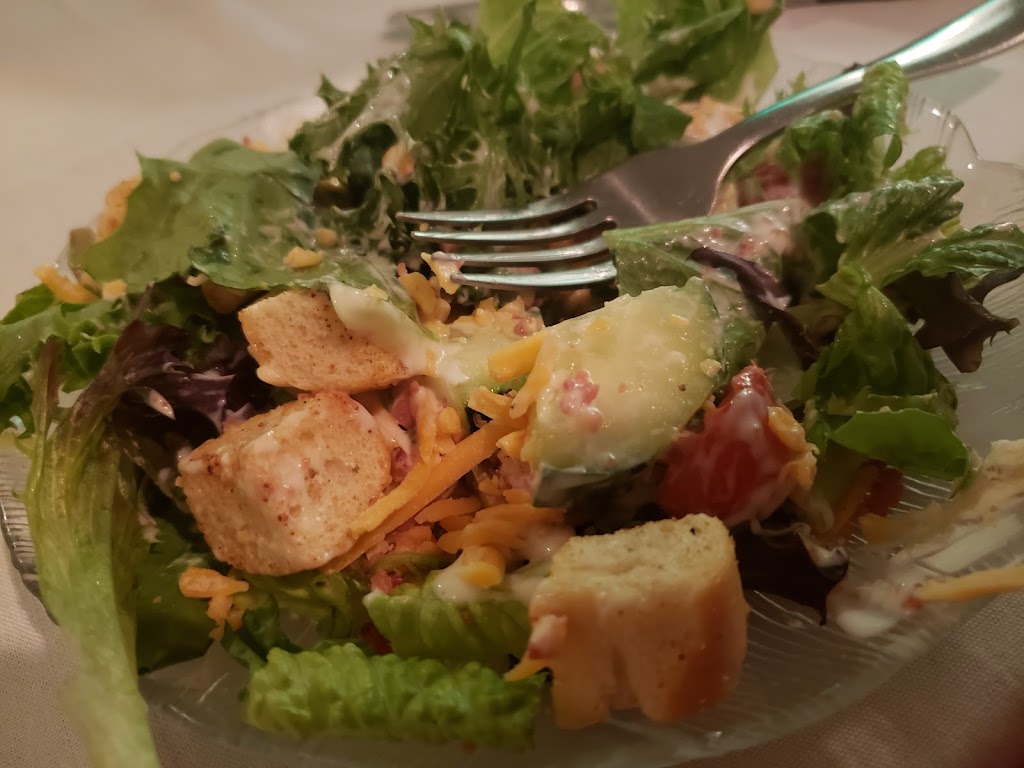One of the people in our party wanted prime rib, however they were sold out. So if you have a hankering for prime rib get an early reservation. Three of us had the Rib Eye steak which was cooked to perfection. They were a little heavy on the seasoning on one of the steaks so if you dont like alot of seasoning it would be best to ask them to go light. One person in our party had Beef Stroganoff. She said it was the best she ever tasted. The salad bar is well stocked and filled with fresh items.