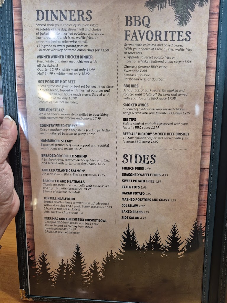 A really great restaurant that takes me back to the days of hometown places that I grew up with. Good specials everyday, with a great breakfast menu, easy lunch and dinner options, and always good service. They are a little overworked, but tip well, they are going the extra mile to make sure you are taken care of. I highly recommend this place. Don't forget to get a picture with the black bears!