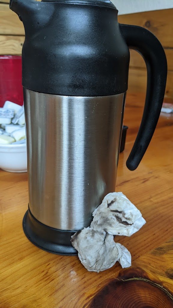 food was ok, bacon tasted like it was cooked ahead and had sat a while. portions were good. waitress mezzed up our order. Decided to wipe off the coffee pot while I was waiting. Nasty. That was a clean napkin!