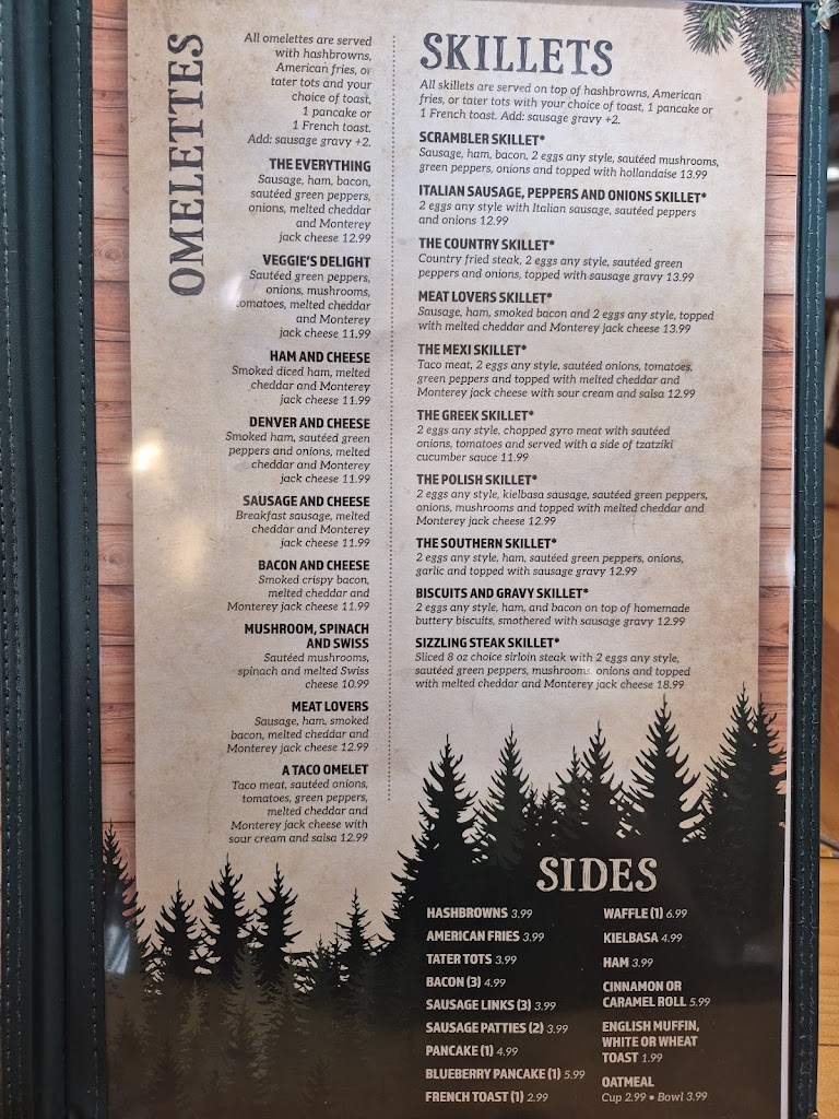 Stopped for breakfast. Wait staff was friendly. Coffee carafe on the table is always nice. We both had the Game Day Skillet: hash browns covered in taco meat, cheese, 2 eggs on top, salsa and sour cream on the side, choice of toast or pancake. I think it was $11. 60