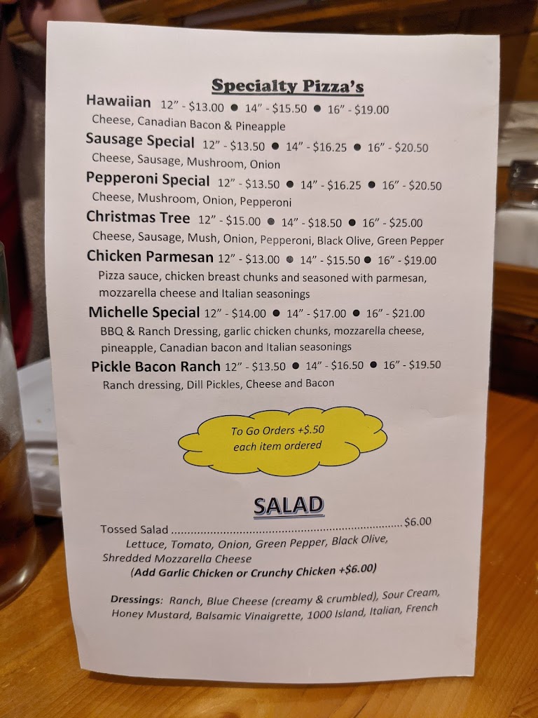 This was our first time there after multiple years of people saying we should go. We got cheesy garlic bread and their monthly special pizza, a French onion, and both were great. We were able to speak with the owner, and it was fun learning the history from such a kind woman. We will be back!