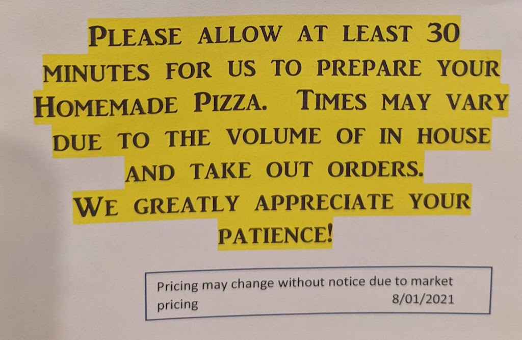 This is just a note from us and that is we would love to see at least Saturday hours to enjoy the pizza on a busy weekend or with friends on a Saturday night.
