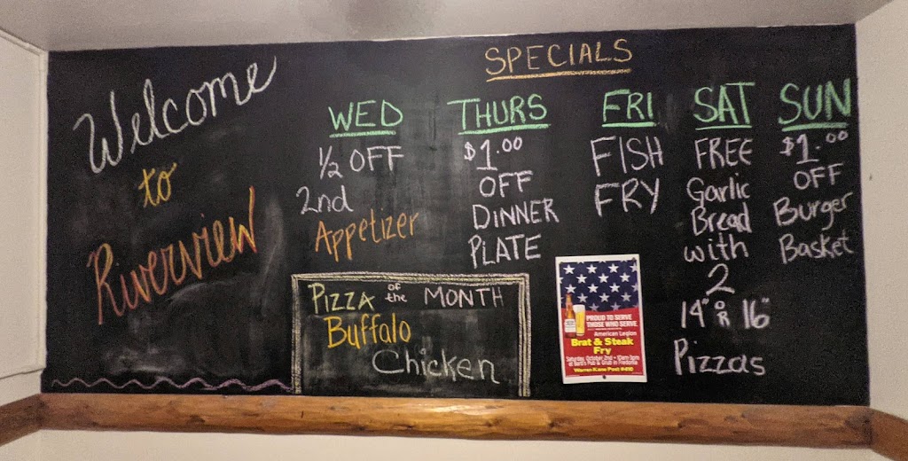 On Wednesday we ordered a Christmas tree pizza and a chicken Parmesan pizza. They were both sooooooo good! In fact they were so good that we ordered two of each of them tonight. Plus, we ordered their hand rolled mozzarella sticks and cheesy garlic bread (which is free for every two pizzas you order on Friday nights). By the way, both the mozzarella sticks and garlic bread are homemade. If it was possible everything was even better tonight. If you haven’t eaten at Riverview Inn, run don’t walk to this sleeper of a restaurant. I would give them 100 stars ⭐️ on this review if I could. Both times I was greeted very warmly and despite the fact they were super busy both times I didn’t have to wait long to get my orders. I can’t say enough to how good their food is. I would eat here every night if I could. Thank you so much Riverview Inn for the delicious pizza, mozzarella sticks, and cheesy bread. We will definitely be back again in the future!