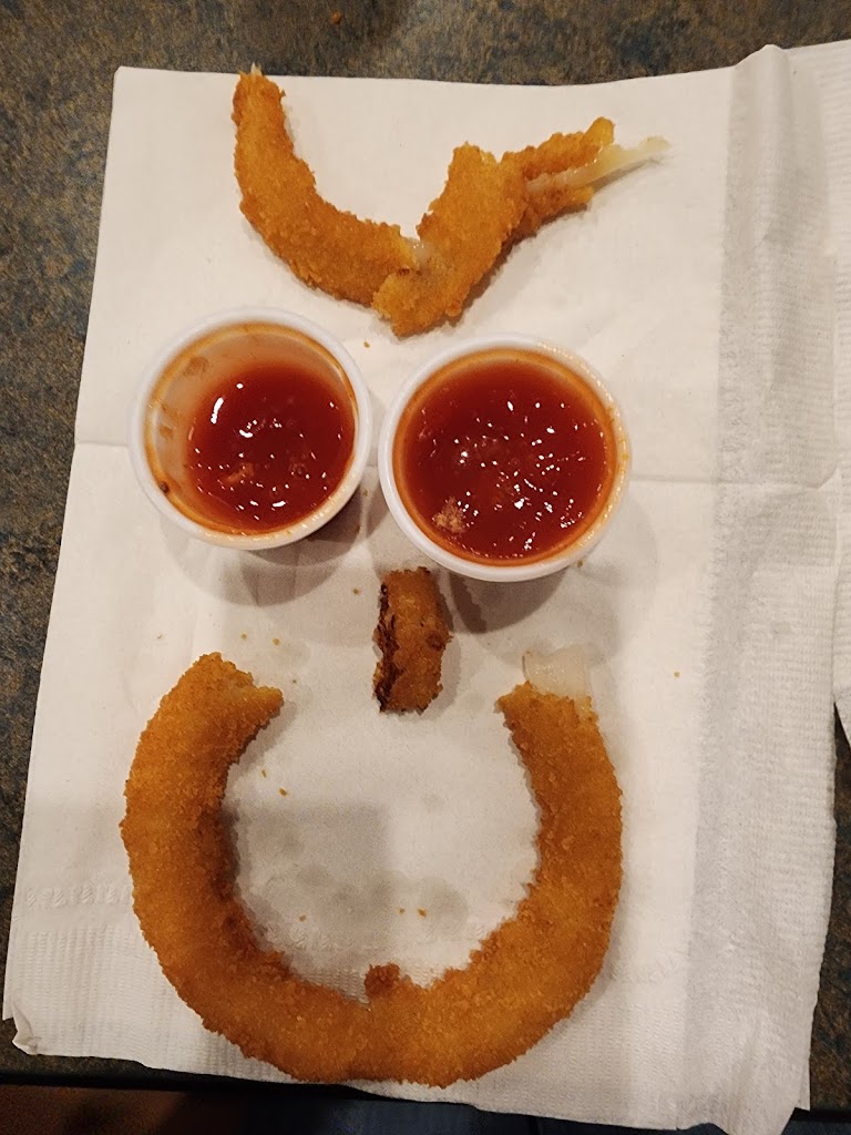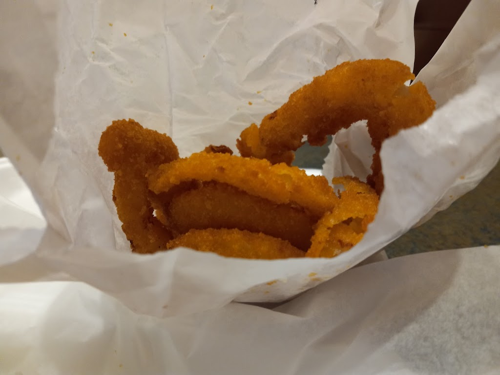 I had the fish and chips. I got only 2 pieces of deep fried fish. I ordered onions rings for the side.