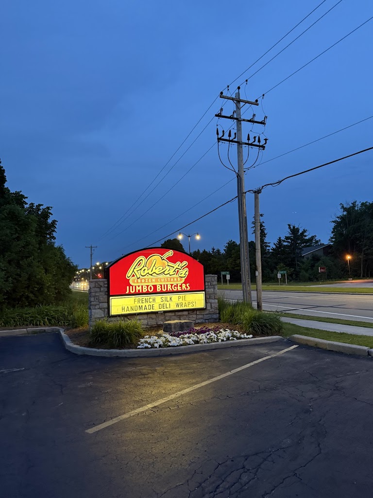 Decent burger joint, but burgers frequently have grissle or fatty bits that really kill the burger for me. I usually drive 10 minutes to pops custard even though Roberts is across the street from my appt. Custard is great, and the chicken is good though.