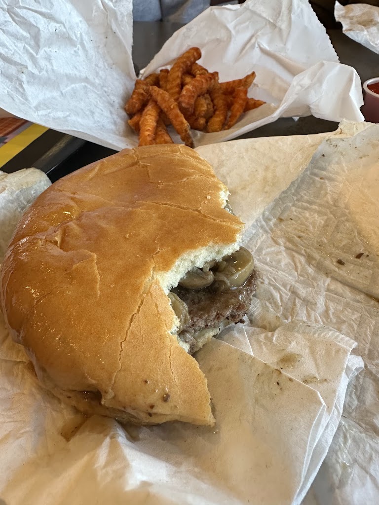 Usually excellent food. However, my wife ordered takeout today and, when she got it home, we discovered my mushroom and Swiss burger had no Swiss. It was just a plain, bland mushroom burger.