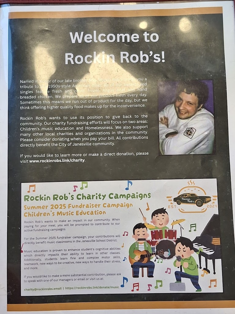 Love Rockin Rob’s every time we go there!! Amazing food, amazing service, love the atmosphere of the 50s diner!! By far my favorite place that’s opened in Janesville :)