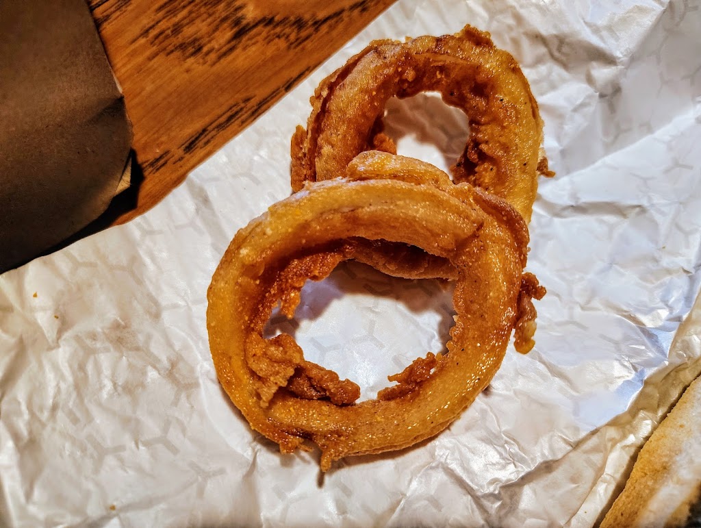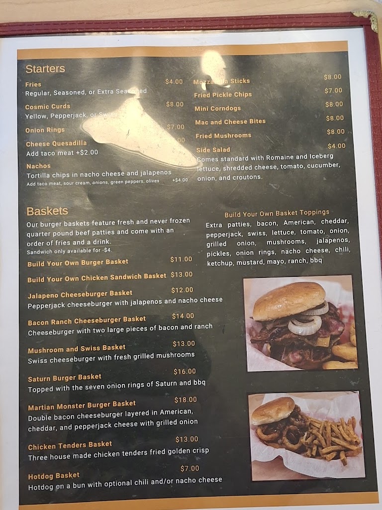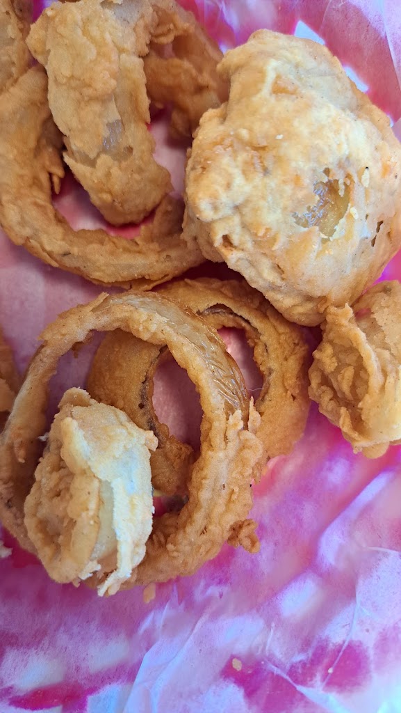 We decided to stop on a whim never had been there before. My boyfriend had the Martian monster burger, and I had the seven Rings of Saturn burger. Both were very good. The batter was light. Fluffy and crisp. Would definitely eat there again.