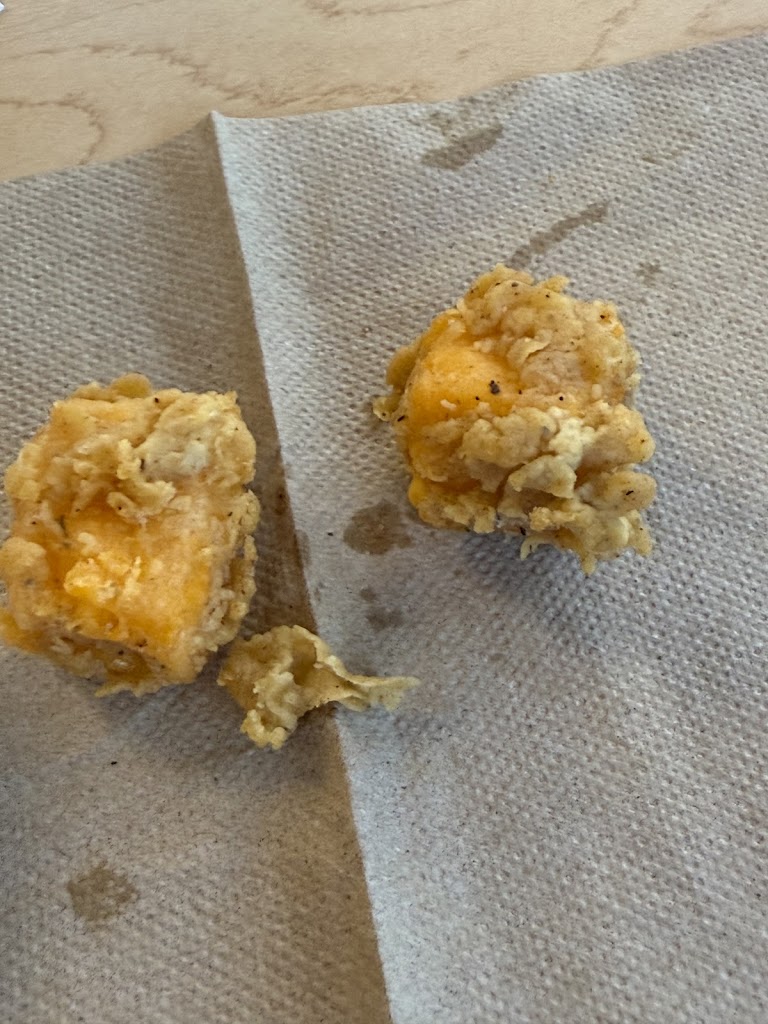 See if there's a way to improve the batter for the cheese curds. It really is a great idea that you should keep... Just needs improvement!