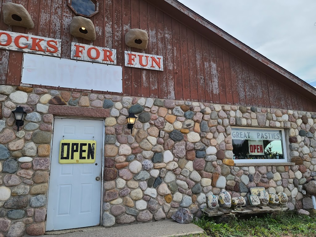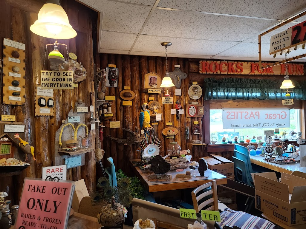 Rocks For Fun is a great place to eat pasties and listen to Don talk about the rock creations he made. You'll lol and the service from Linda is great she meets you with a big smile. They are real friendly