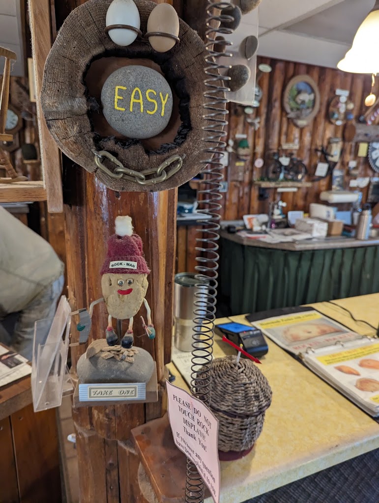 i would give jim 10 stars if i could, not only did he open for us over an hour after closing, but he told us wonderful stories of his father and all his rock art creations. he absolutely went above and beyond for us. all of the art had us smiling, laughing, and so happy! and the pasties are so delicious! we picked out 6 different flavors and every single one was absolutely delightful! Jim is such a wonderful person and it was such a blessing to get to see all that Rocks for Fun Cafe has! I genuinely hope to be able to come back to again!