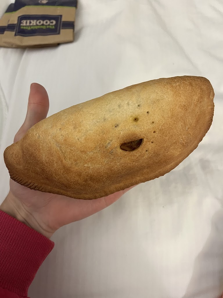 The pasty was shaped weird. The directions to warm them up was to microwave them because they only sell frozen ones. (I’m thinking after trying to eat one it’s because they don’t want you to know how bad they are in there face) the crust is wrong, the filling is flavorless and as you can see in the picture it’s just about un edible.