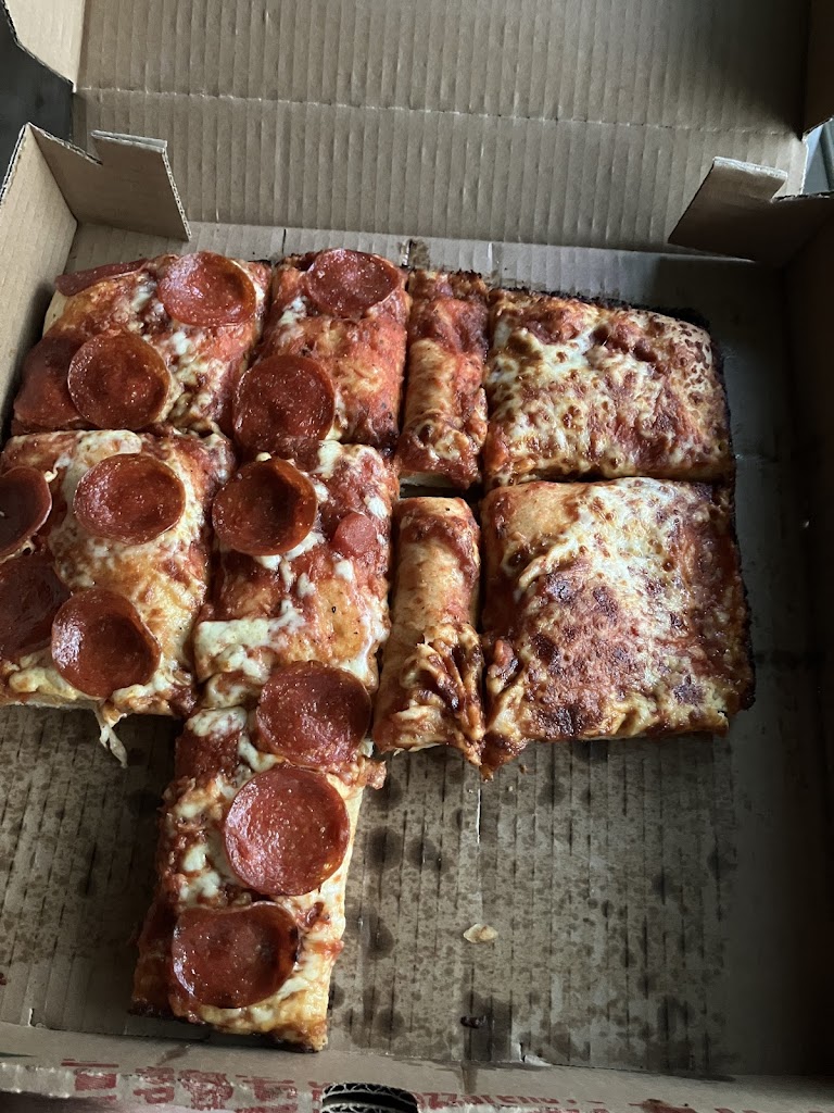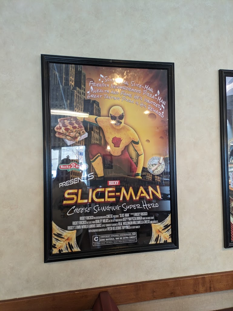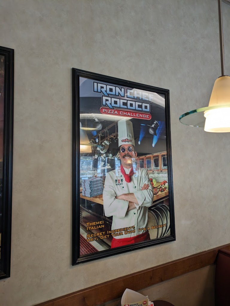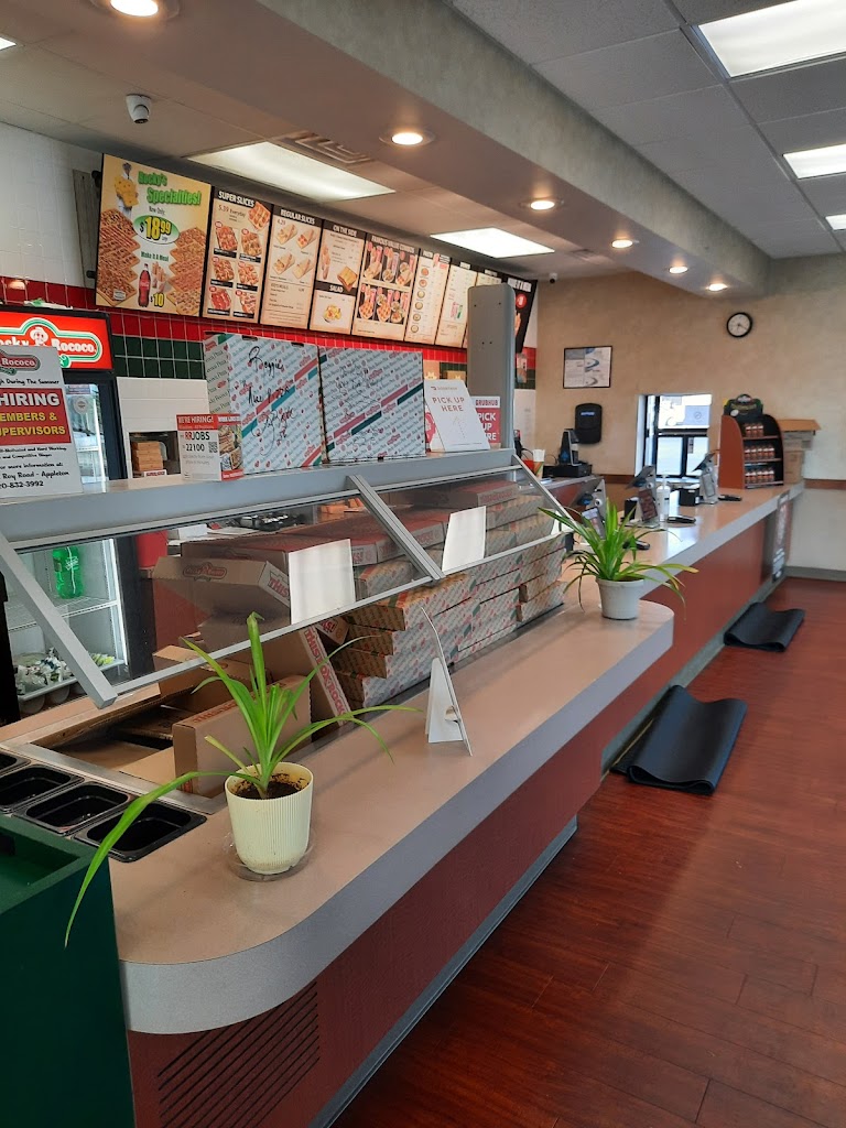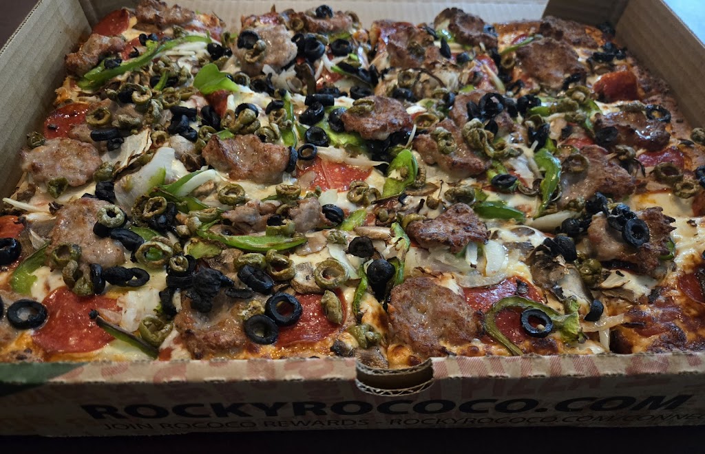 I love rocky rococo’s pizza it is so delicious the pizza seems to melt in your mouth it has the right amount of sauce to cheese ratio it’s pizza is a thin crusted pizza with a lot of sauce and cheese, the atmosphere was very good I loved all the rocky rococo movie posters they were funny the staff was helpful but were a little busy it was not that full, it is a great place to get food and talk with family it made a lasting memory and I look forward to coming back in the foreseeable future I would strongly recommend to get the delicious cheese pizza, it is just so delicious and filling. It is a great place and I highly recommend rocky rococo pizza and pasta.