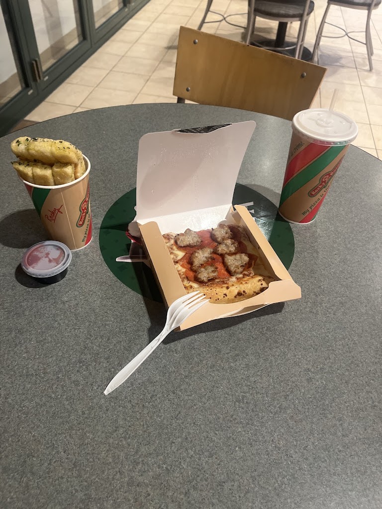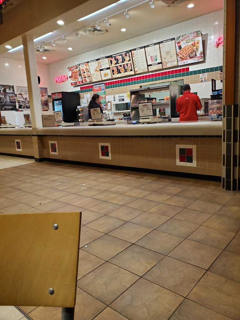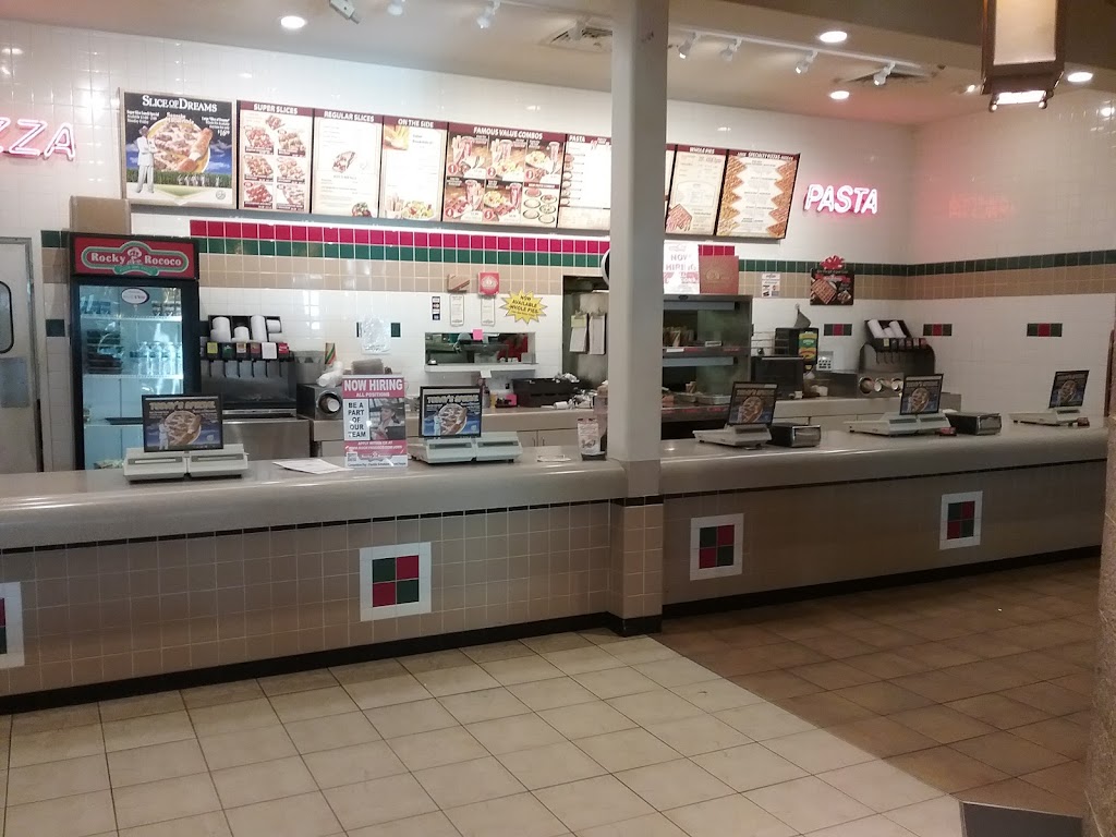 I love rocky Rocco. This location can be hit or miss. Lots of times there will be no one out front. We sometimes get breadsticks that are undercooked or pizza that wasn't cut correctly (too small). For the most part it's great though. I like that the soda refills are free unlike most of the other restaurants in the mall.