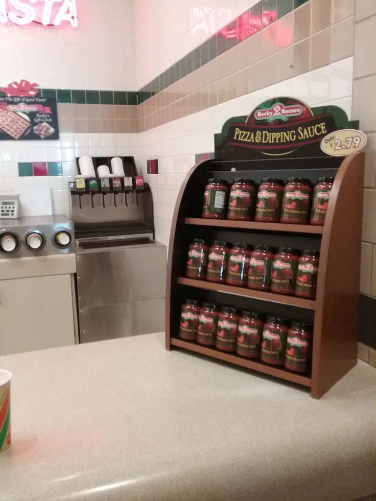 Went to the Rocky in the Fox River Mall the service was rude ask a question and get rude comments back. The pizza was under cooked the crust was really doughy, I couldnt eat it the breadsticks they were so doughy and way over seasoned. I used to love going to this Rocky but no more.